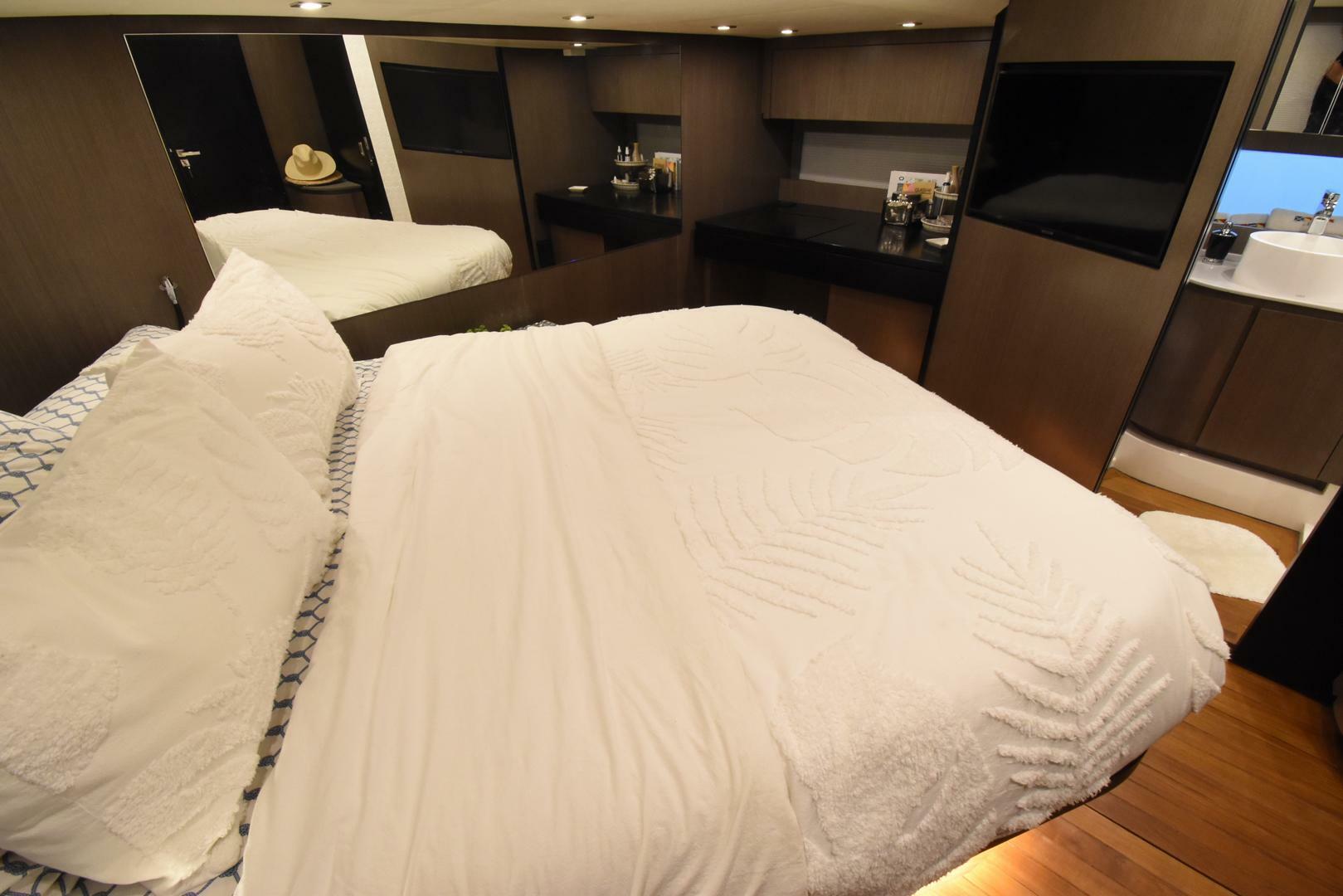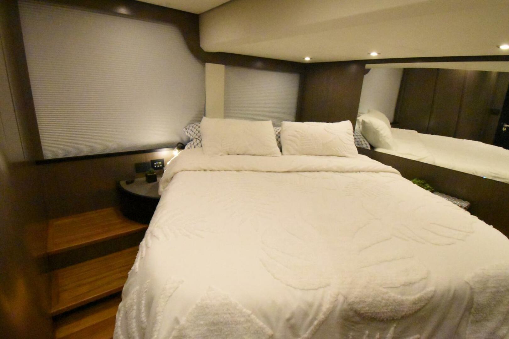 Mojo was created to accommodate luxurious travel and occasional live aboard. Owners previously owned an Okean 50 and knew all the right options to incorporate in this 52 build. From performance handling to speed and maneuverability; thruster, joystick and 3rd docking station, Mojo is built right. Extra refrigeration and Ice ensure the galley is stocked and there are 3 separate cooking areas aboard; bridge grill, aft deck grill with burner and full galley. The Kitchen has a convection oven microware, cook top, sink with custom added additional refrigeration. Whether taking in the bird’s eye views from the bridge deck or dining up front alfresco or lounging out on the balconies, relaxation is delightful. A Full Shade Fly at the bow seating area cools you as does the electric Main Deck Awning. On the main deck with all the articulating doors open, inside is outside. The saloon features a 360 view or your surrounding waters with ample seating and comfort to hang out or entertain. In addition, the hidden wide screen TV will emerge from its cabinetry when the time comes to enjoy a movie. Below main deck are three staterooms. The spacious master boasts a queen bed, sit down vanity and ensuite head with shower. The forward VIP has a full bed with plenty of hanging storage sharing a head and shower with the third two-bunk stateroom. All have TVs, reading and accent lighting. Away from shore home is where you are. The whisper quiet generator powers all the systems including 5 air conditioners, galley, entertainment systems and lighting. A Starlink High Performance system has you connected when you want to be and a SeaKeeper 6 will provide for your comfort. Mojo is the finest Okean 52 edition built to date and due to unfortunate circumstances, available.
