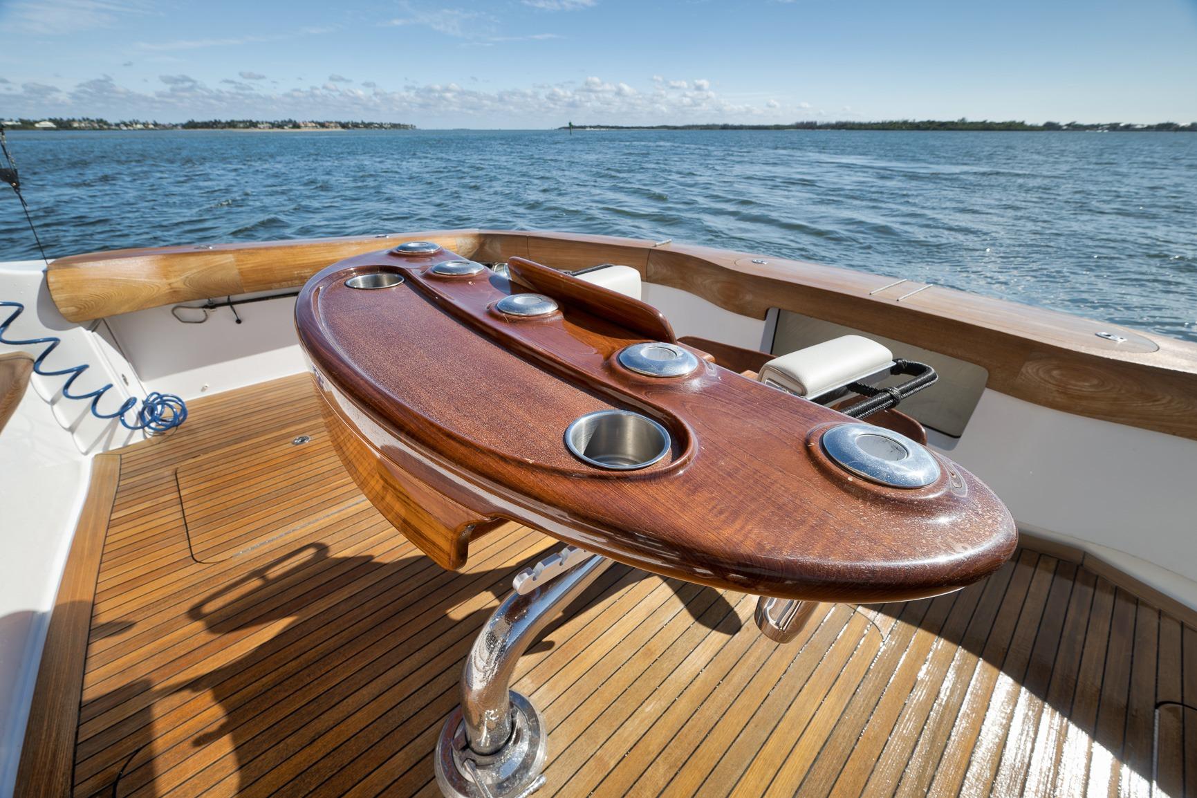 Teak Helm Pod w/ Palm Beach Style Single Lever Controls & Integrated Bow Thruster Controls