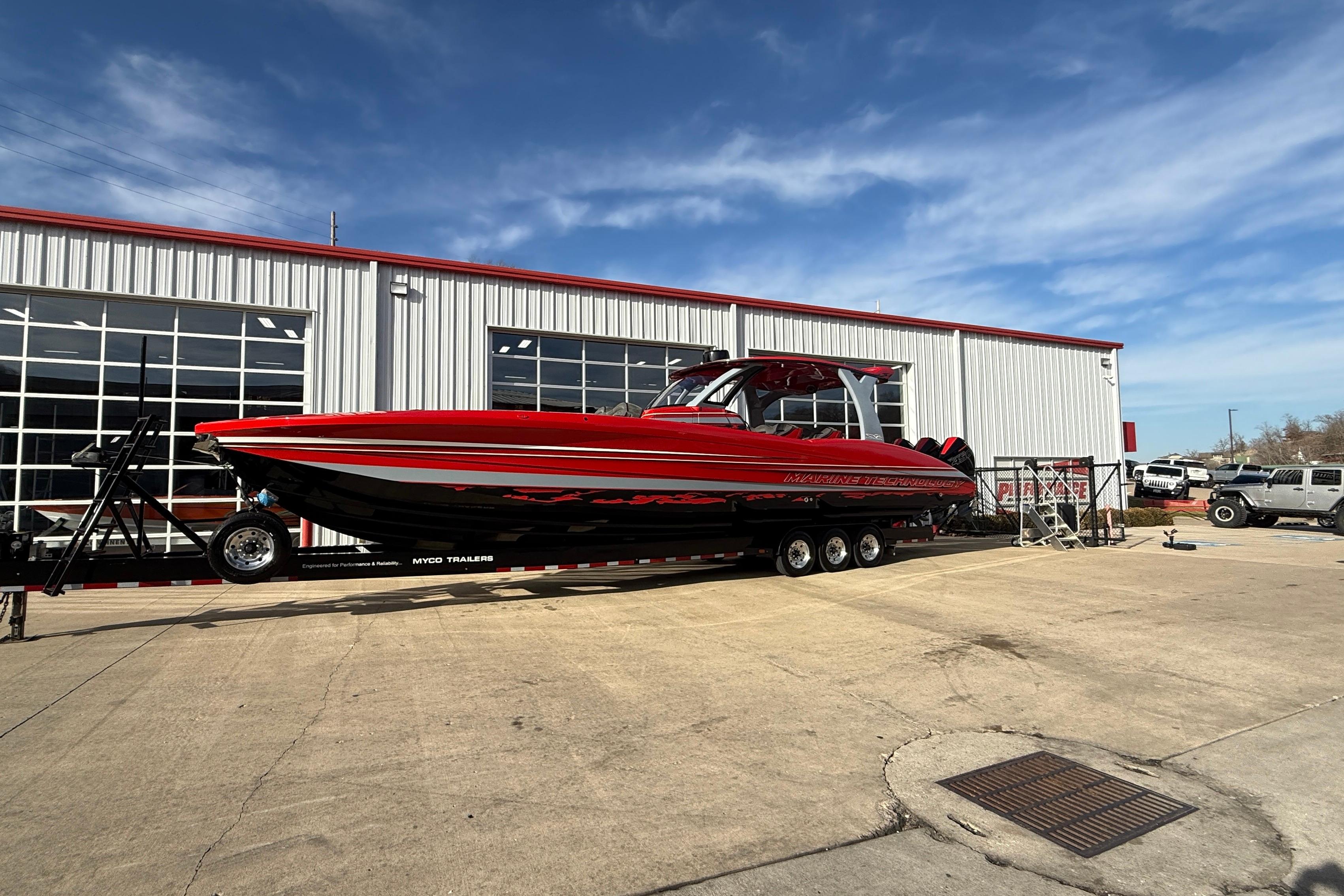 2020 MTI-V 42 with 333 hours on Quad Mercury Racing 450Rs, Rub Rail delete, (3) Garmin GPS at the helm, Radar Mercury Vessel veiw, HUGE Fusion/ JL Audio Stereo, Wing Speakers, Pop-up Bow Speakers, Pop-up bow FLIR, Aluminum Cleats, Fender Clips, Alcantera Interior, Black-out hardware, Chill plate in the Bar with Clear doors and Bottle Holders, Under Water Lighting, Cabin Air Conditioning w/ Dash Blowers, Cabin Sink, Pump out Head w/ Macerator, Bow Thruster, Anchor Windlass, Seadek Flooring, Cabin Sink, MYCO Aluminum Trailer Included!