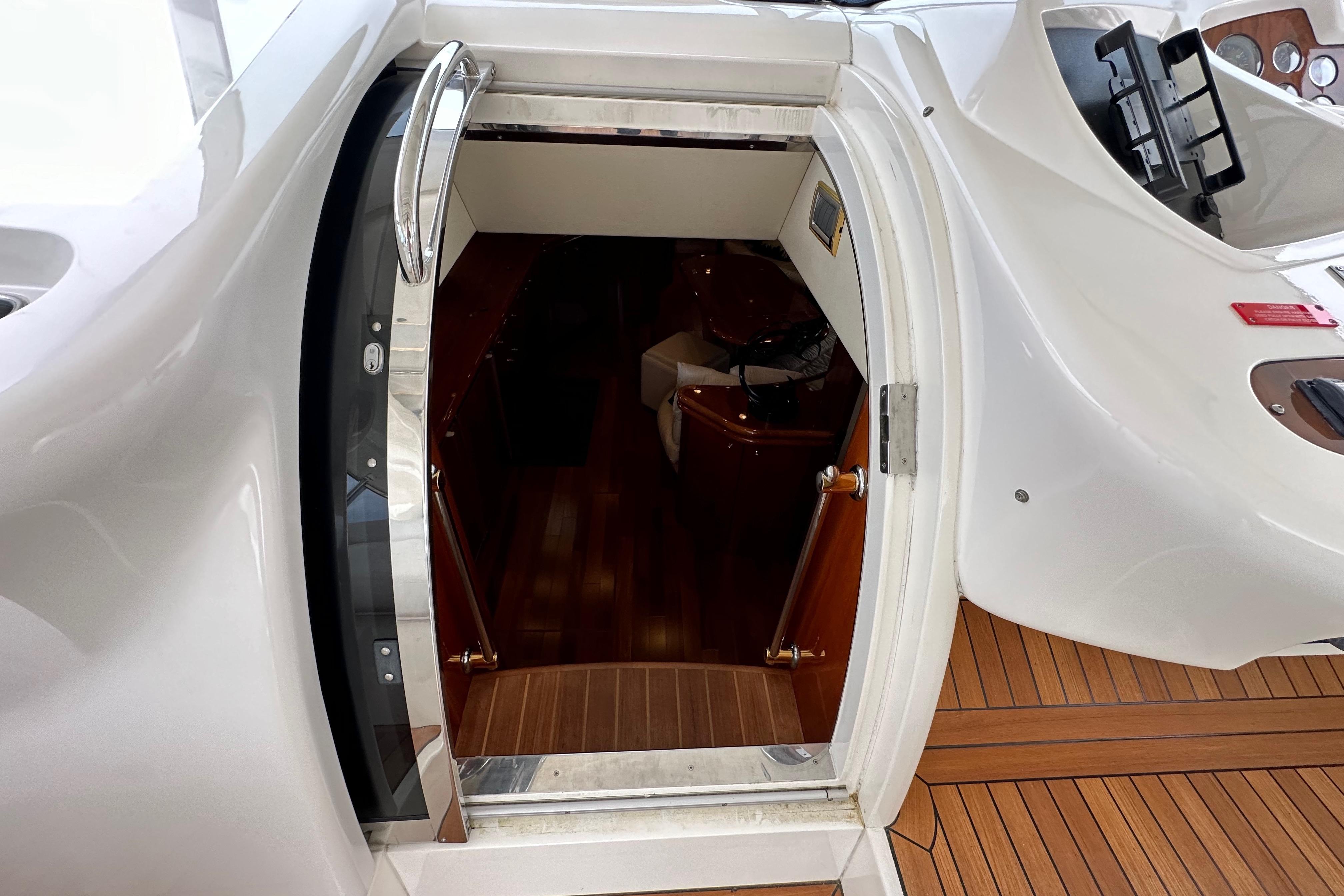 Sunseeker Predator combines stunning performance with supreme comfort. In the spacious saloon, seating curves around a dining table that can seat eight people. The choice of light- colored wood matched by the highest quality of finishes achieves a distinctive elegance. The 60 offers spacious accommodations for seven, forward master with queen size berth an en suite head, mid-starboard guest stateroom with queen size berth en-suite head, port side mid guest stateroom with three single berths. On deck, her large open cockpit has comfortable horseshoe seating for eight around a folding dining table. The aft seat can easily be extended to form a comfortable sun lounger. The cockpit is fully equipped with a wet bar and grill with refrigerator, freezer and separate ice maker as well as a sink. The large hydraulic lounging platform provides plenty of room for a tender.