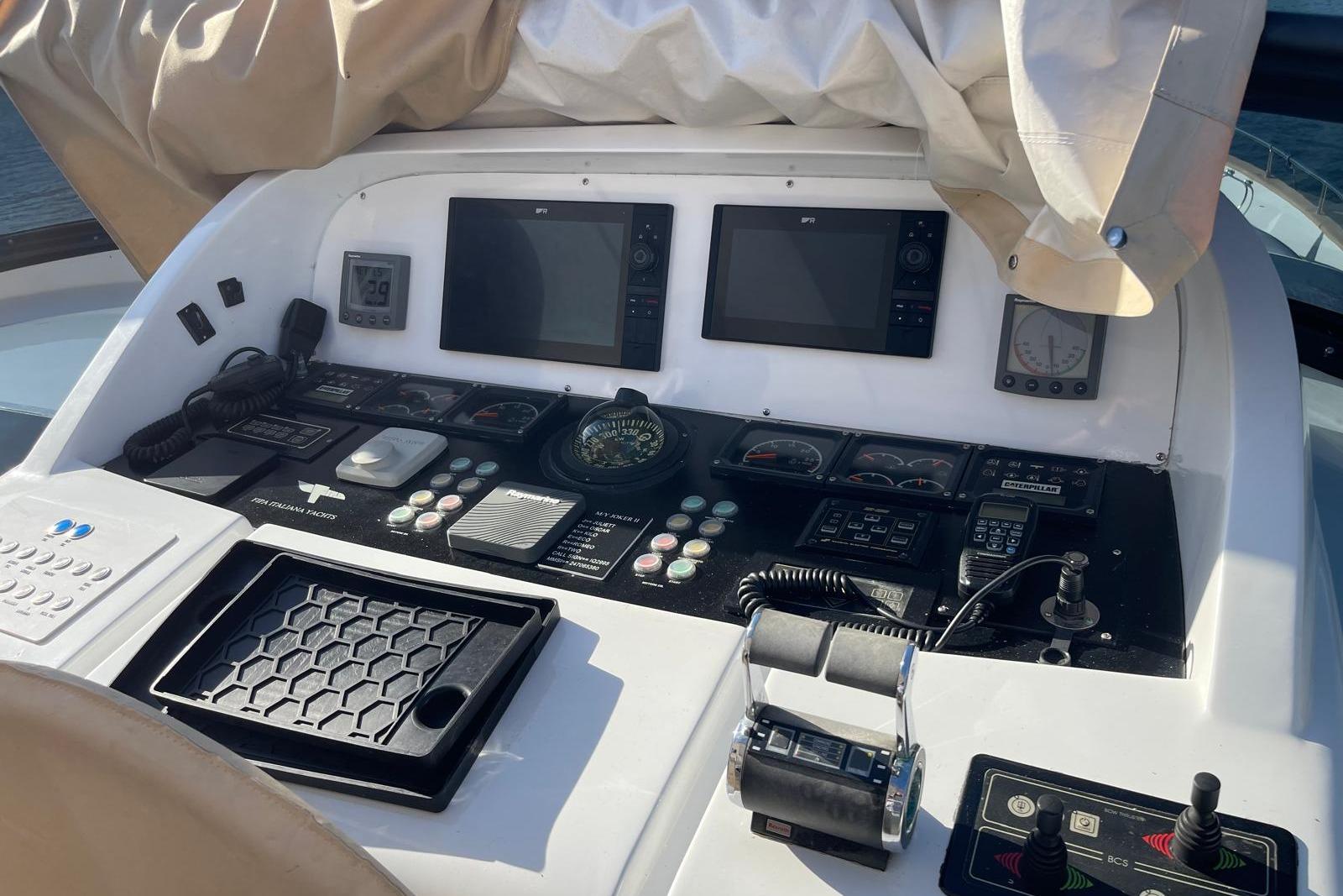 Introducing the stunning 2004 Maiora 24 S Flybridge, a remarkable vessel that combines elegance with performance. With an impressive overall length of 25.6 meters, this used yacht offers ample space for luxurious cruising. Crafted from durable fiberglass, its planing hull shape ensures a smooth and swift ride, achieving a cruising speed of 24 knots and a maximum hull speed of 27 knots. Powered by twin Caterpillar C32 inboard engines, this yacht boasts reliable diesel performance, with each engine having 1800 hours of use. The 5-blade bronze propellers enhance maneuverability and efficiency, making every journey enjoyable. Accommodating up to five cabins and five heads, the Maiora 24 S provides comfort and privacy for all guests. This vessel is designed for those who appreciate the finer things in life, making it the perfect choice for unforgettable adventures on the water. Experience luxury and performance with the Maiora 24 S.
