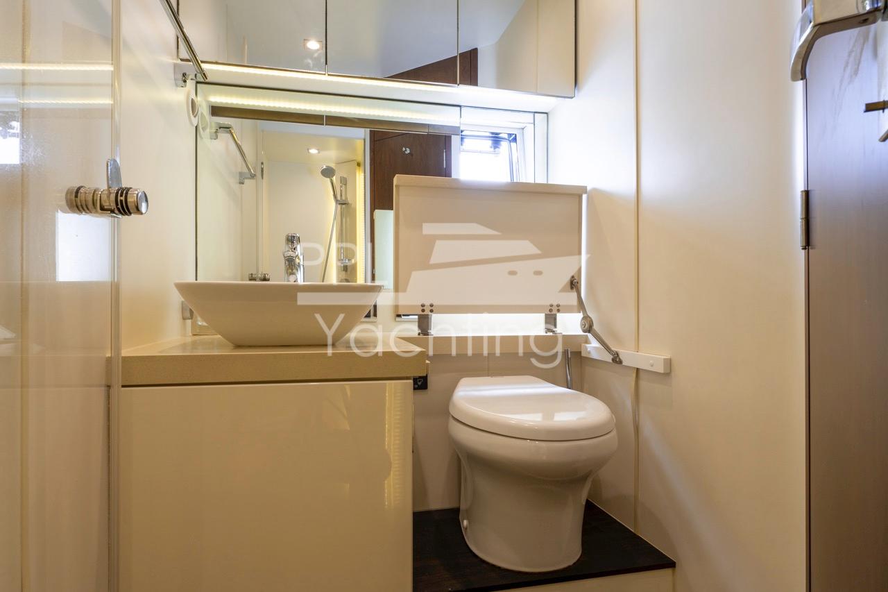 This yacht offers all the amenities that one could consider necessary to either spend a peaceful day at anchor or to cruise around Mallorca with the whole family, including a hydraulic bathing platform on which a JetSki can be stowed, an electro-hydraulic gangway and a tender garage that offers enough space for a Williams 285 Jet tender.