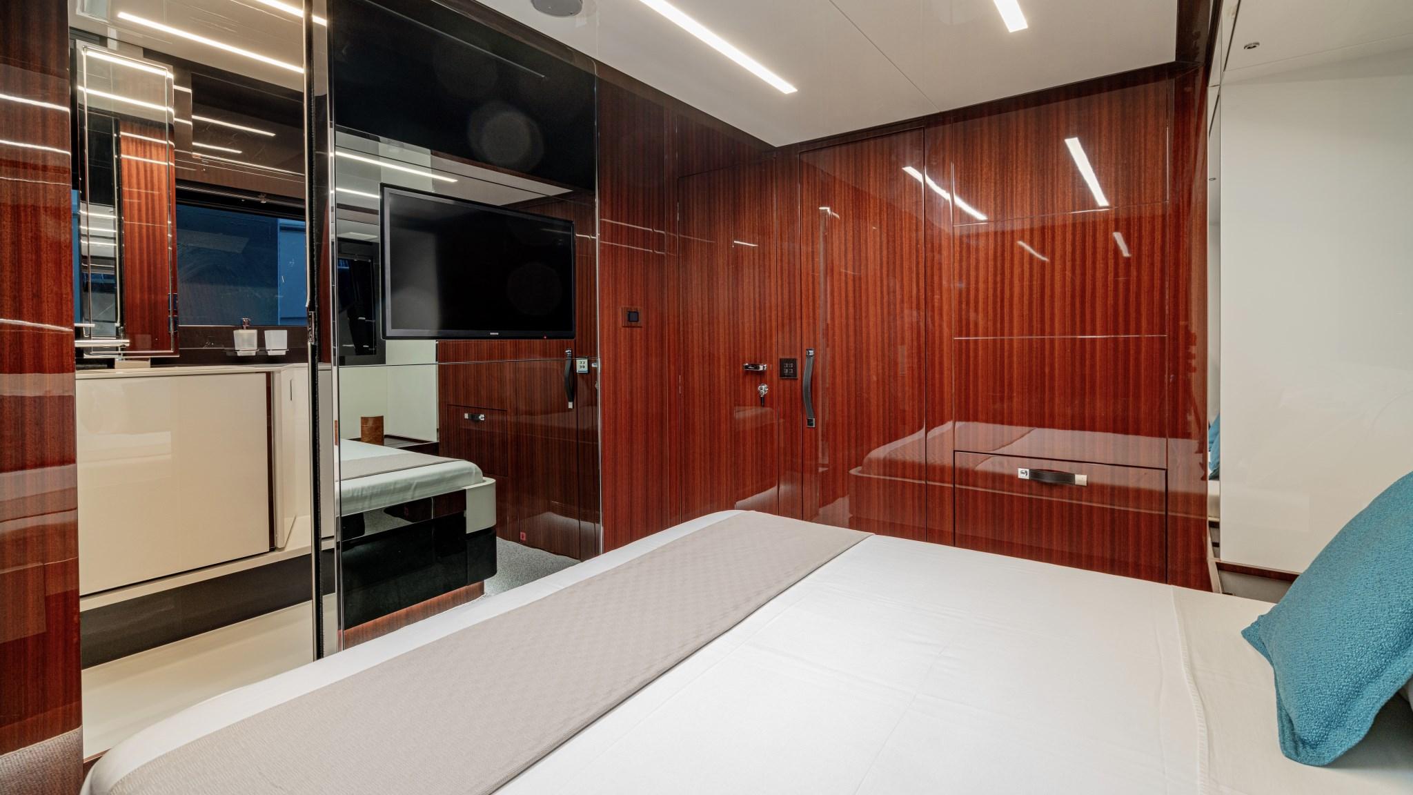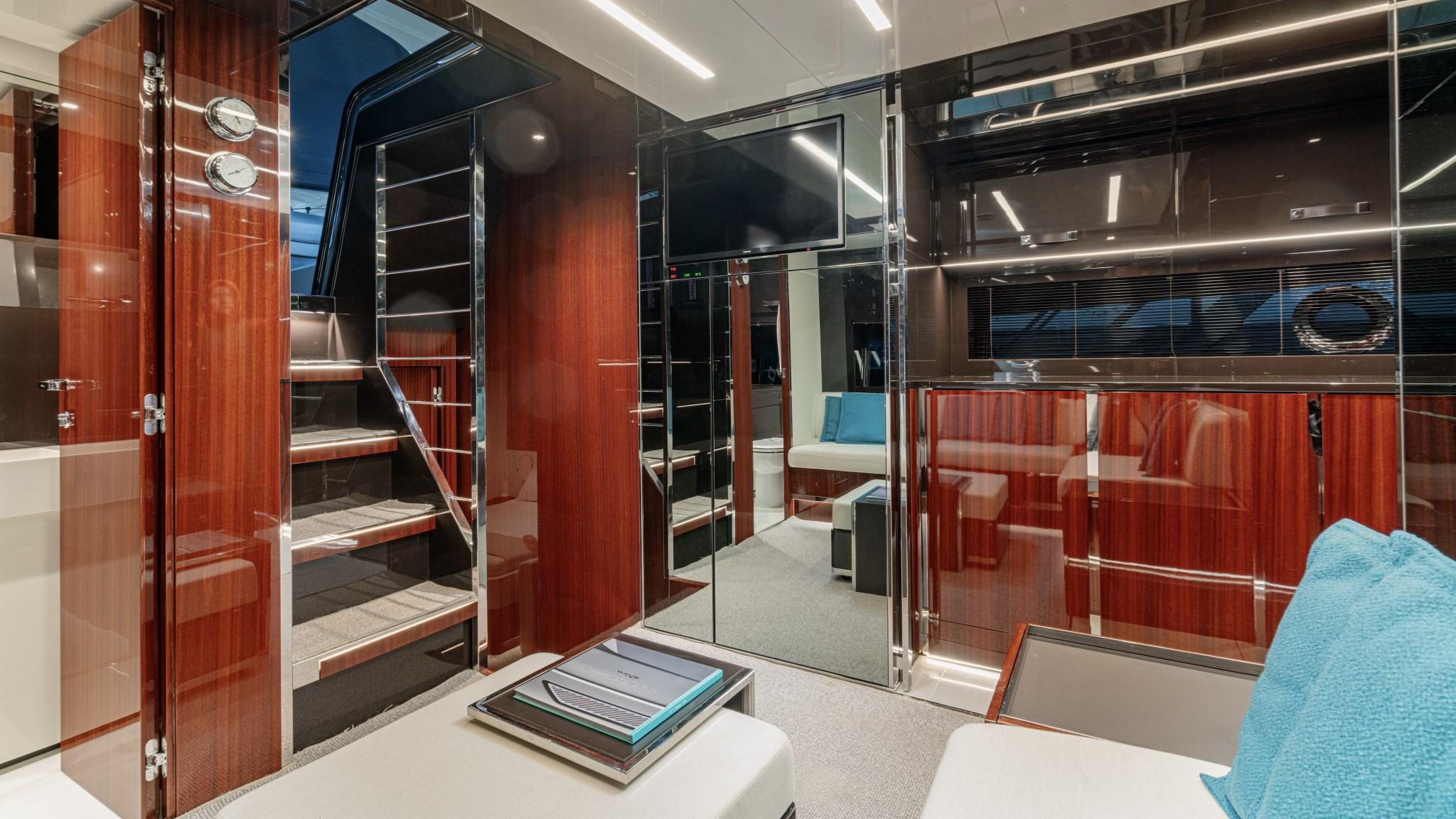 Un savoir-faire impeccable, une excellence artistique et une technologie de pointe convergent pour créer un yacht qui captive au premier abord. Présenté en parfait état et offert par son unique propriétaire depuis sa neuf, il est équipé de stabilisateurs Seakeeper pour garantir un confort supérieur en mer et à l’ancre. L’aménagement intérieur comprend deux élégantes cabines de salle de bain attenante, complétées par une cabine d’équipage séparée avec salle de bain privée, ce qui la rend parfaitement adaptée aux séjours prolongés ainsi qu’aux croisières raffinées de jour.