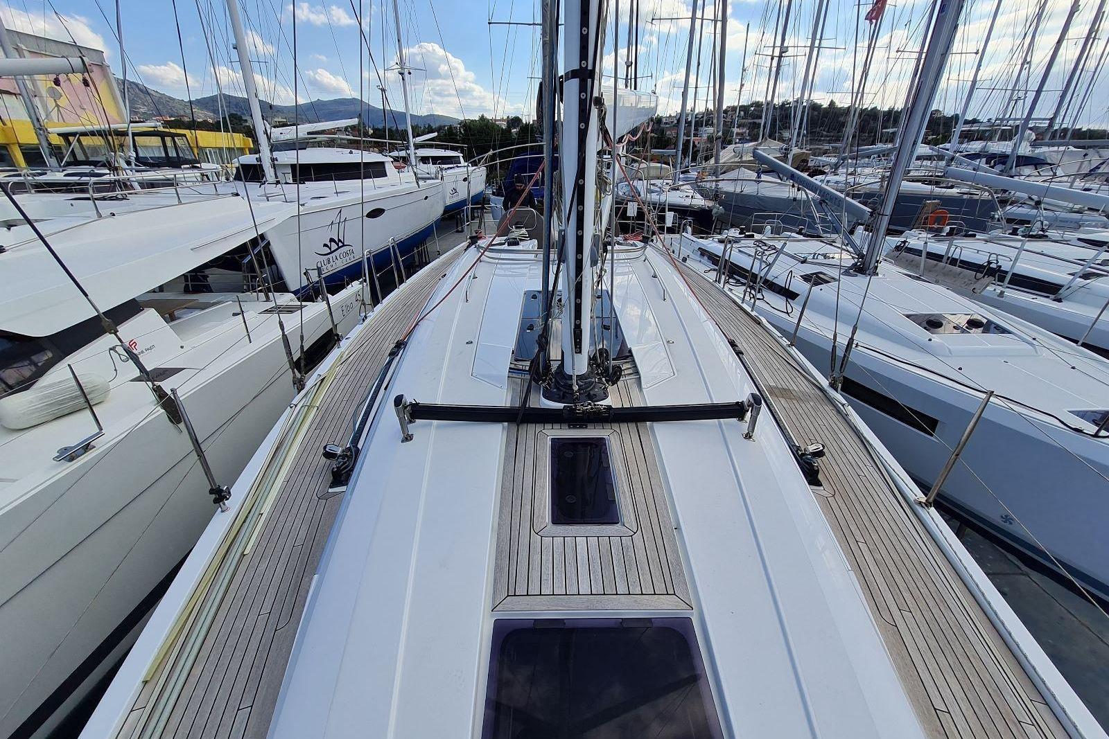 Constructed in composite with a teak deck, she features a carbon Pauger mast with rod rigging and a powerful sail wardrobe, including recently replaced carbon/Technora expedition sails (March 2024). A fin keel with spade rudder and retractable bow thruster provide confident performance under sail and precise handling in tight marinas.