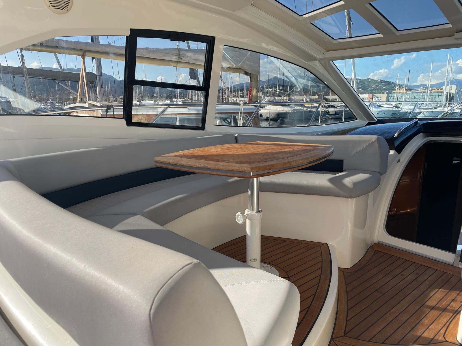 TEAK COCKPIT – COCKPIT SHOWER – ELECTRO HYDRAULIC GANGWAY – COCKPIT CUSHIONS – COCKPIT TABLE – STERN BATHING LADDER – LOW ENGINES RUNNING HOURS (350) - AIR CONDITIONING - IPS JOYSTICK - COMPLETE CUSHIONS - COMPLETE COVERS - HARD TOP WITH ELECTRIC OPENING - STERN SUNDECK - BOW SUNDECK - TENDER GARAGE – HOLDING TANK – GENERATOR MASE 8 KW – POP UP CLEATS ON STERN – ELECTRIC RECOVERY TENDER SYSTEM IN GARAGE