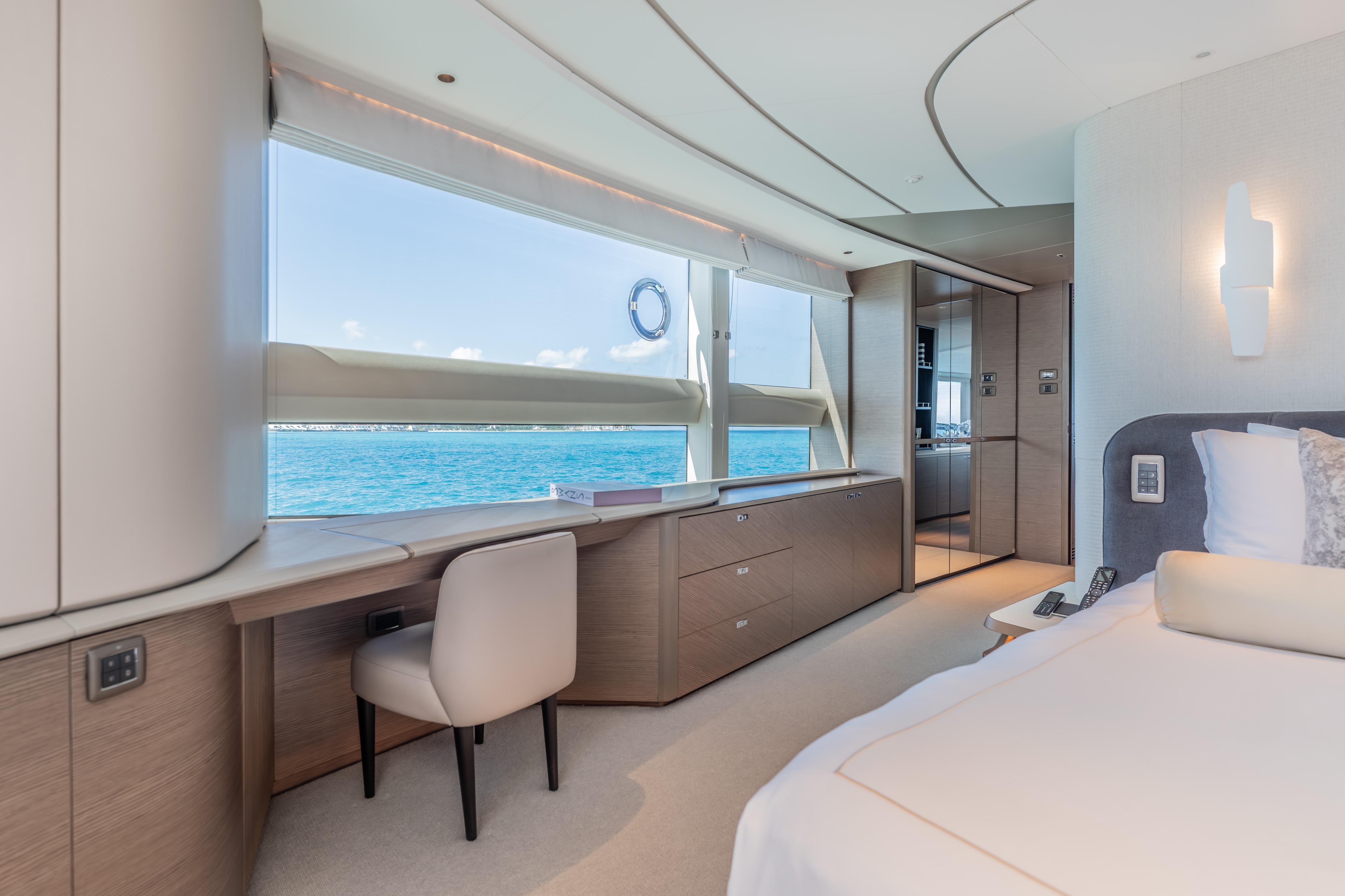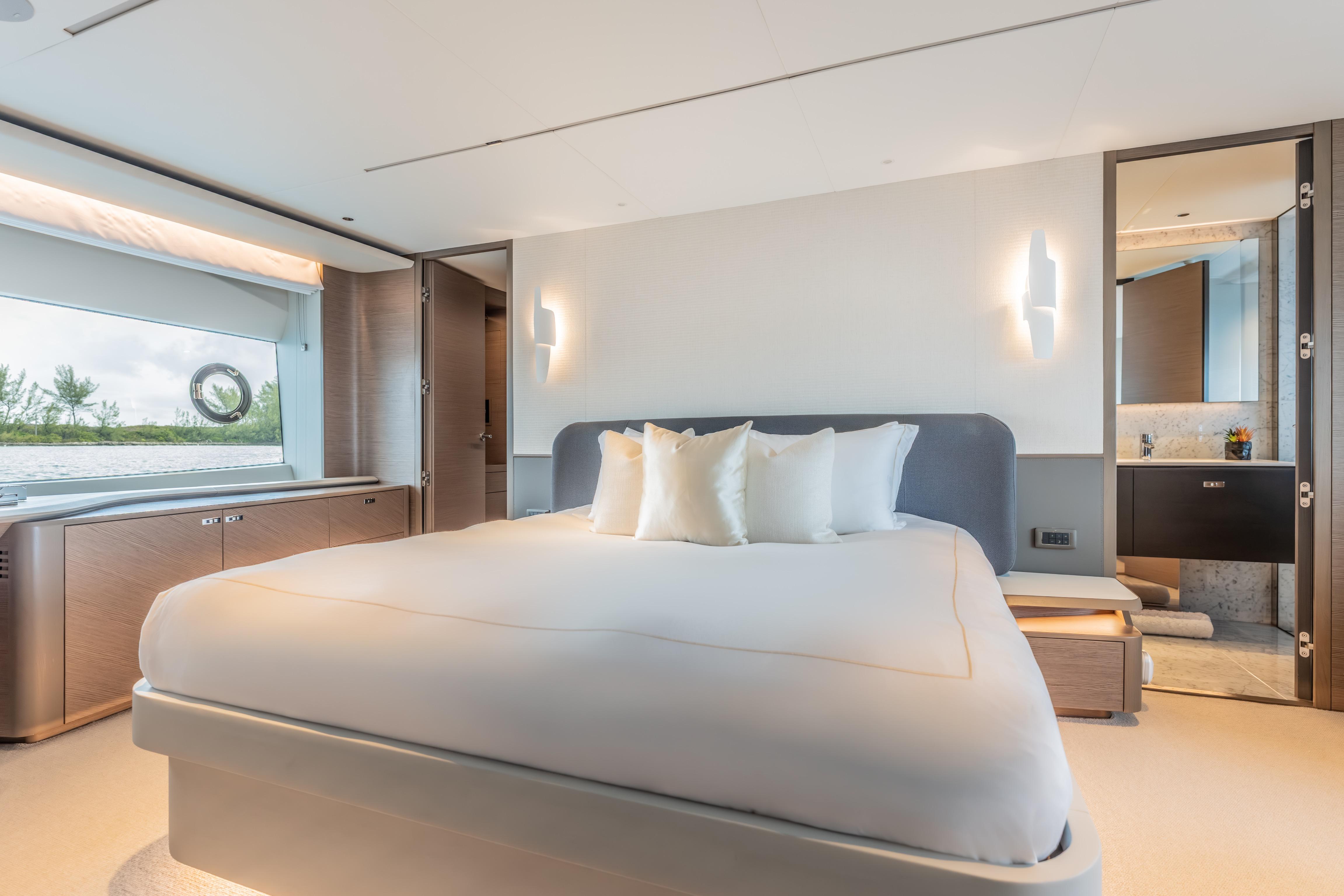 - 5 cabin layout with main deck Master stateroom - includes the following zone in addition to the Standard Audio System above: Main deck Master stateroom - 65" UHD Smart LED TV on power lift, Naim Uniti Atom audio system with Bluetooth, multi-zone streaming capability and dedicated app. BlurayUHD CD/DVD player. Paired with Focal speakers (2) and subwoofer (additional speaker located in en-suite)