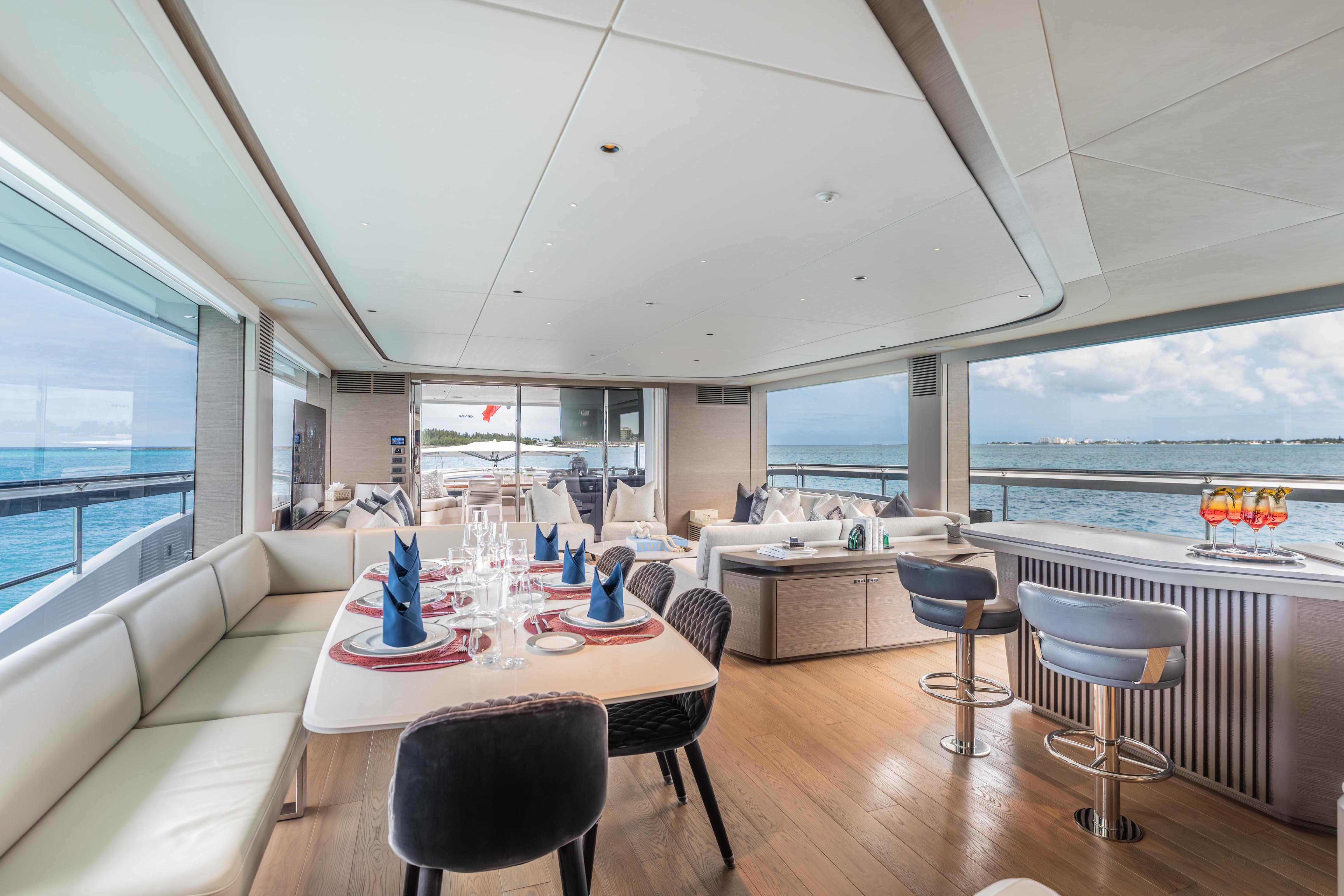 - Cockpit seating area - Naim Uniti atom audio system with Bluetooth, multi-zone streaming capability and dedicated app. Paired with JL Audio waterproof speakers (2)