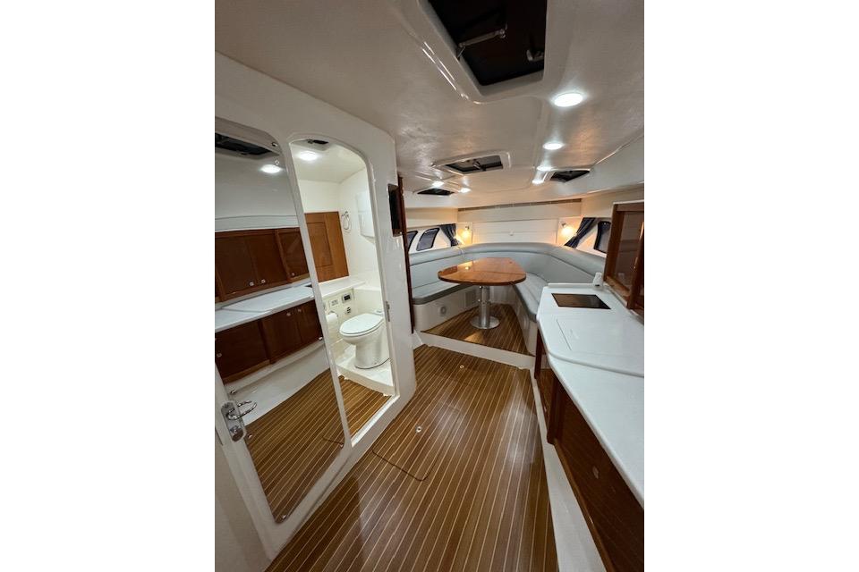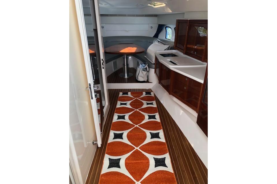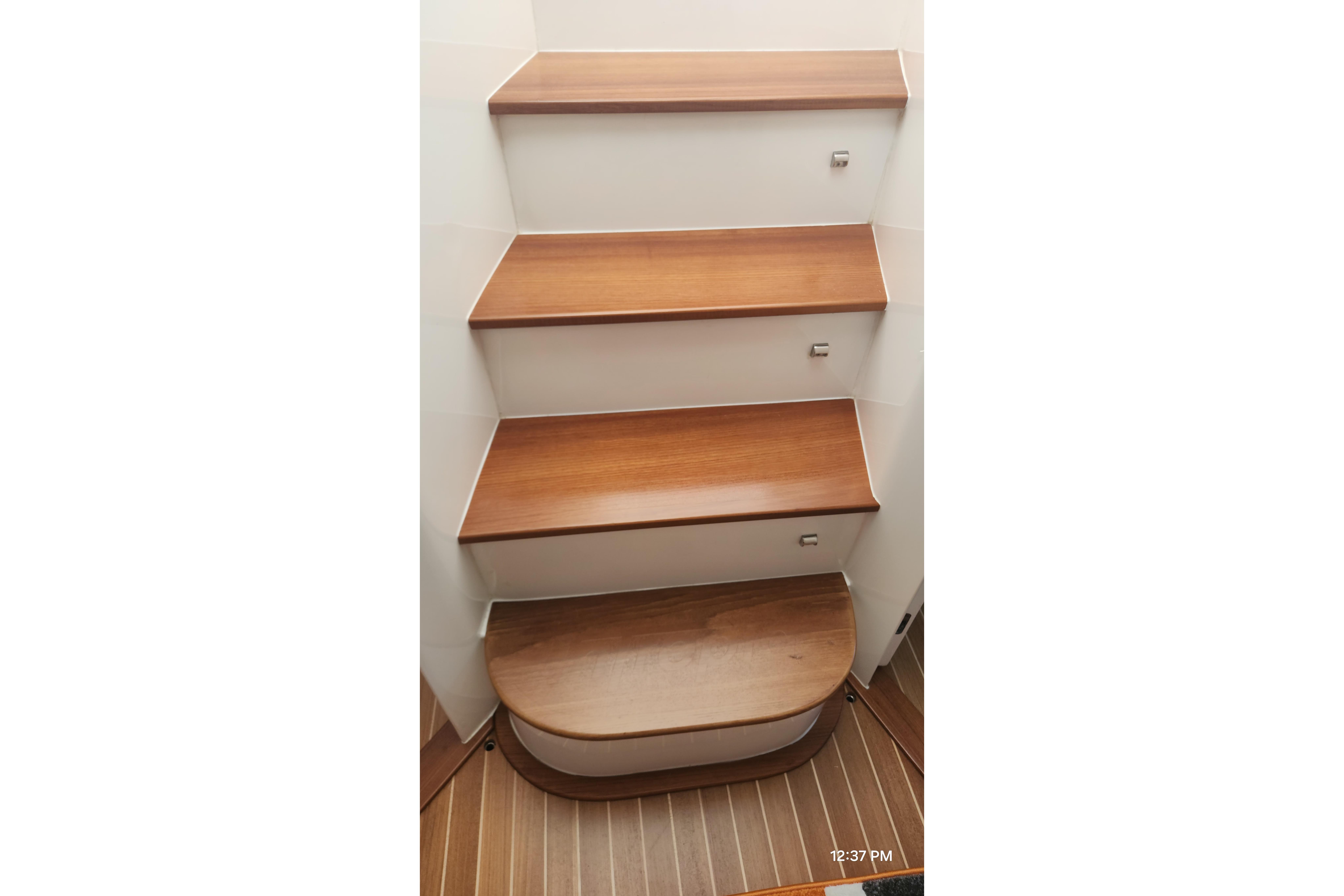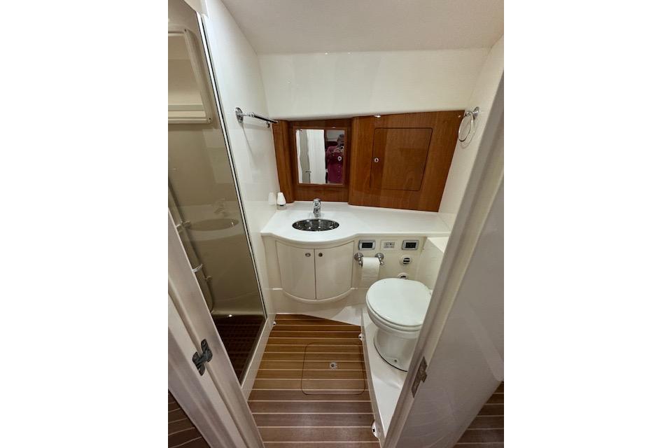 Three reverse cycle HVAC zones: 30,000 BTU in upper deck; 16,000 BTU in forward cabin; 12,000 BTU in staterooms