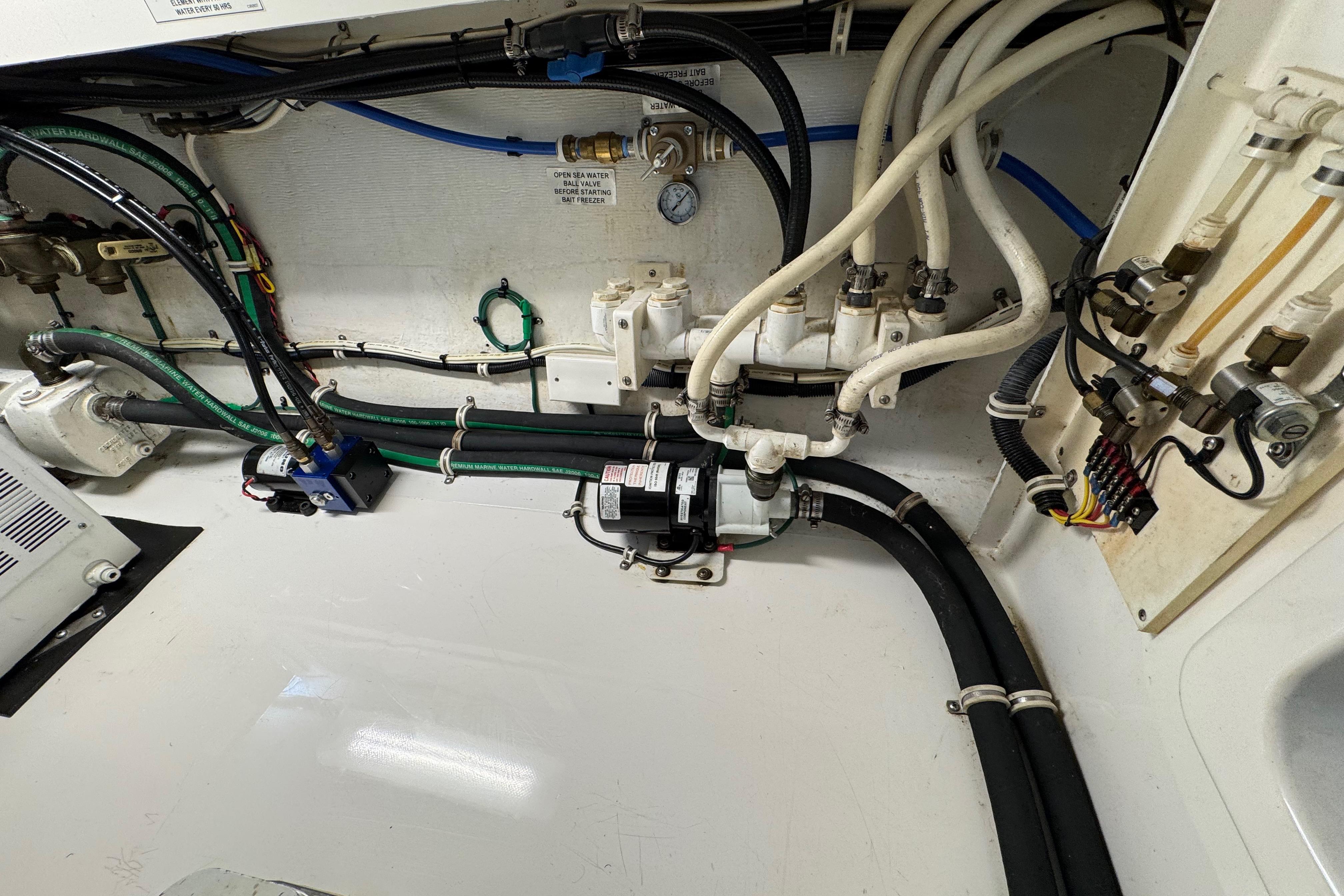 - Fish boxes (2), large capacity, insulated, macerator pump-out system