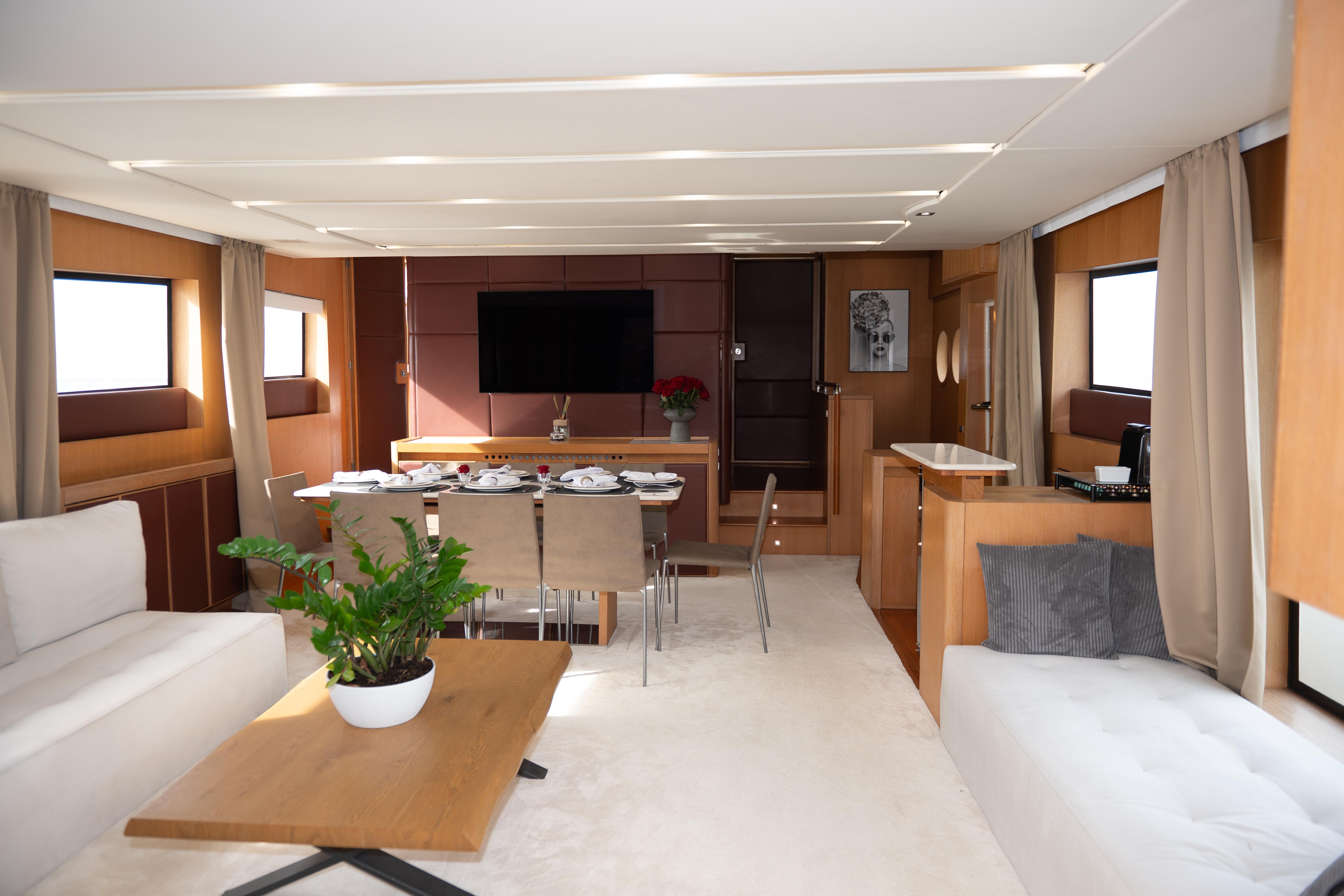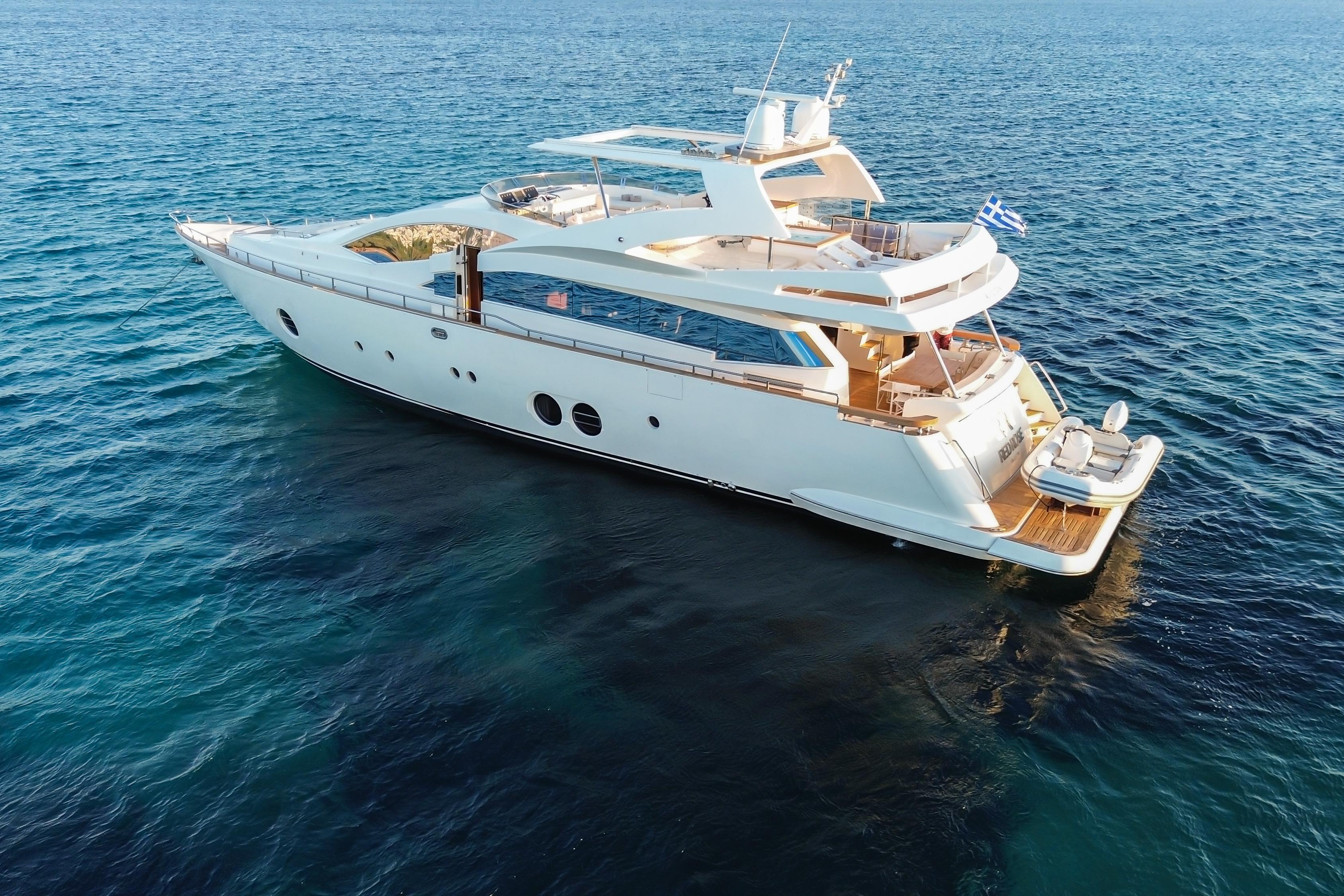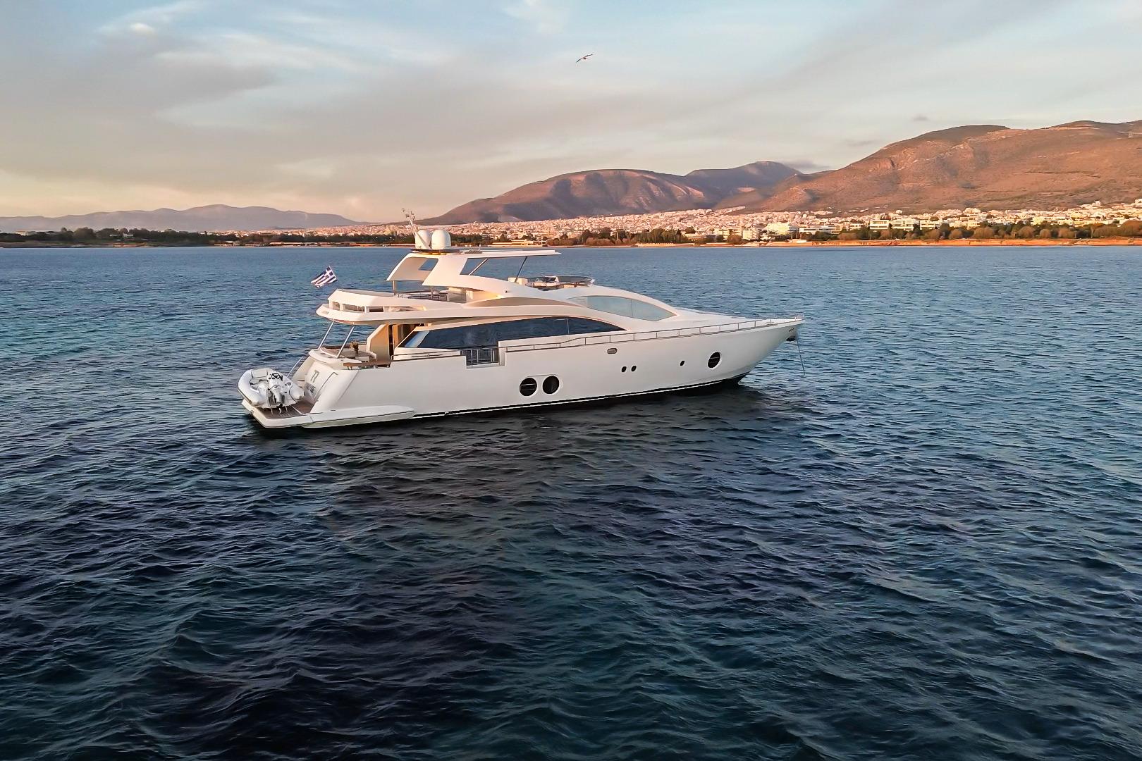 Introducing the magnificent Aicon 85, a stunning motor yacht from 2010 that embodies luxury and performance. With an impressive overall length of 27 meters, this vessel is designed for both comfort and adventure on the water. The deep Vee hull, crafted from durable fiberglass, ensures a smooth and stable ride, perfect for cruising at a speed of 26 km/h, with a maximum hull speed of 30 km/h. Powered by twin CAT C32 inboard engines, each delivering an impressive 1360.9 kW, the Aicon 85 boasts a reliable and robust performance, having logged just 980 hours. Accommodating up to six cabins and eight heads, this yacht provides ample space for relaxation and entertainment. The thoughtful features and elegant design make the RED ROSE an exceptional choice for those seeking a blend of sophistication and adventure on the open seas.