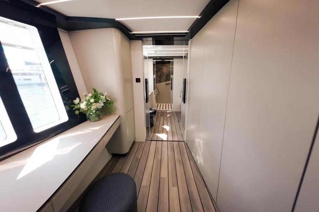 The unique superstructure design creates an unprecedented amount of space in the lounge and front cockpit, a rare feature in 60-foot catamarans. Its sleek silhouette, inverted bows, and aerodynamic roof spoiler enhance both aesthetics and performance, setting the WAVE 60 apart as a true masterpiece of modern yacht design. WAVE 60 isn’t just a catamaran—it’s a new definition of luxury at sea.