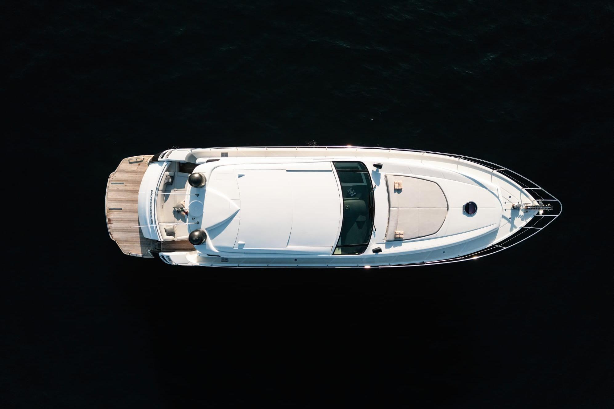 Pershing 62 in good overall condition, featuring white hull with black side stripe, teak cockpit and aft bathing platform. Interior finished in cherry wood with parquet flooring throughout both living and sleeping areas. The transmissions are serviced annually, including both routine and extraordinary maintenance.