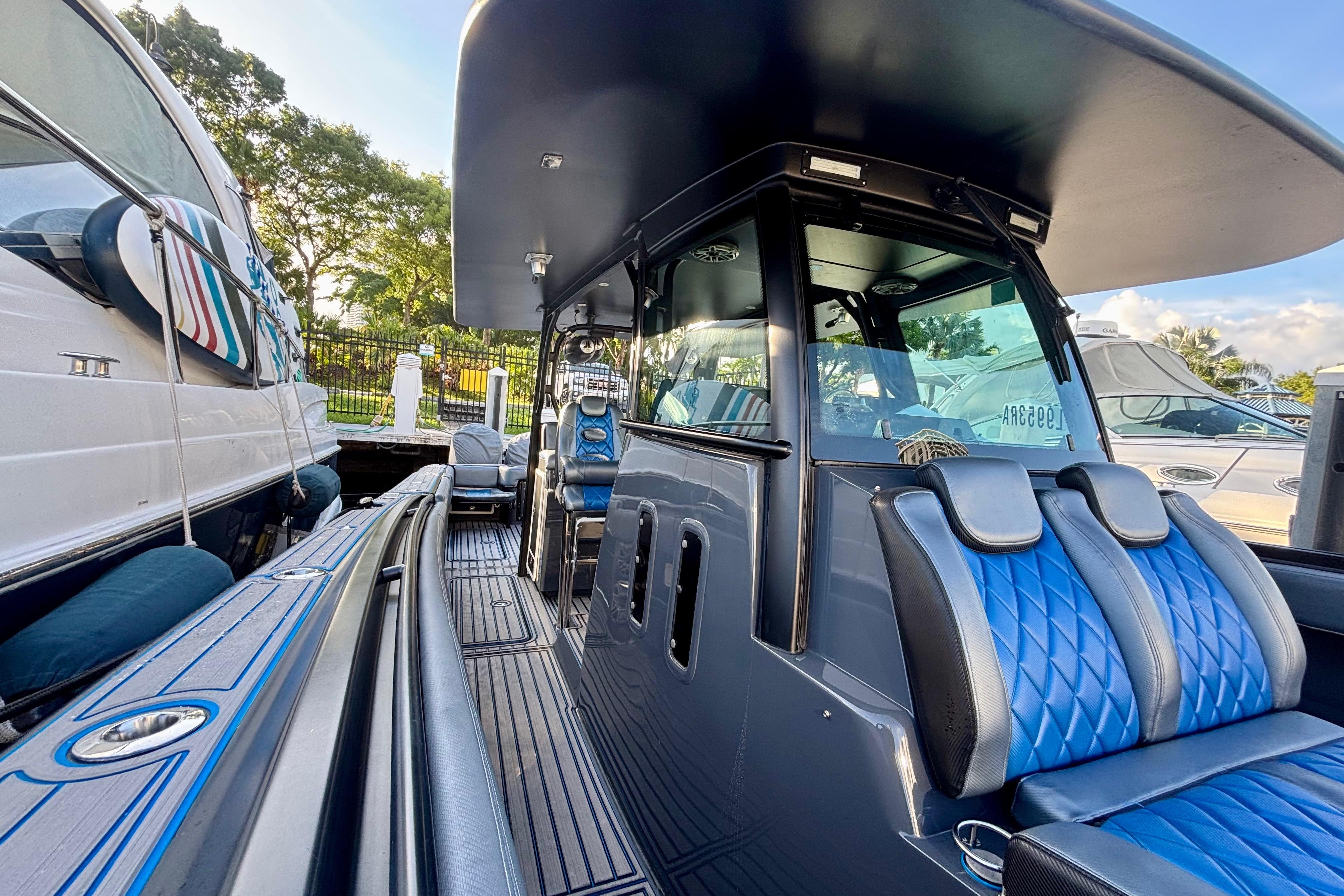 This 2016 HydraSports 4200 Siesta underwent a major refit in 2023, featuring all-new electronics, a striking custom paint job, and premium custom upholstery throughout. Powered by reliable quad Yamaha 350s, this boat offers turnkey offshore performance combined with stylish upgrades and luxury. With two rows of triple seating, full custom marine decking, and high-end features inside and out, this vessel is ready to impress any discerning owner.