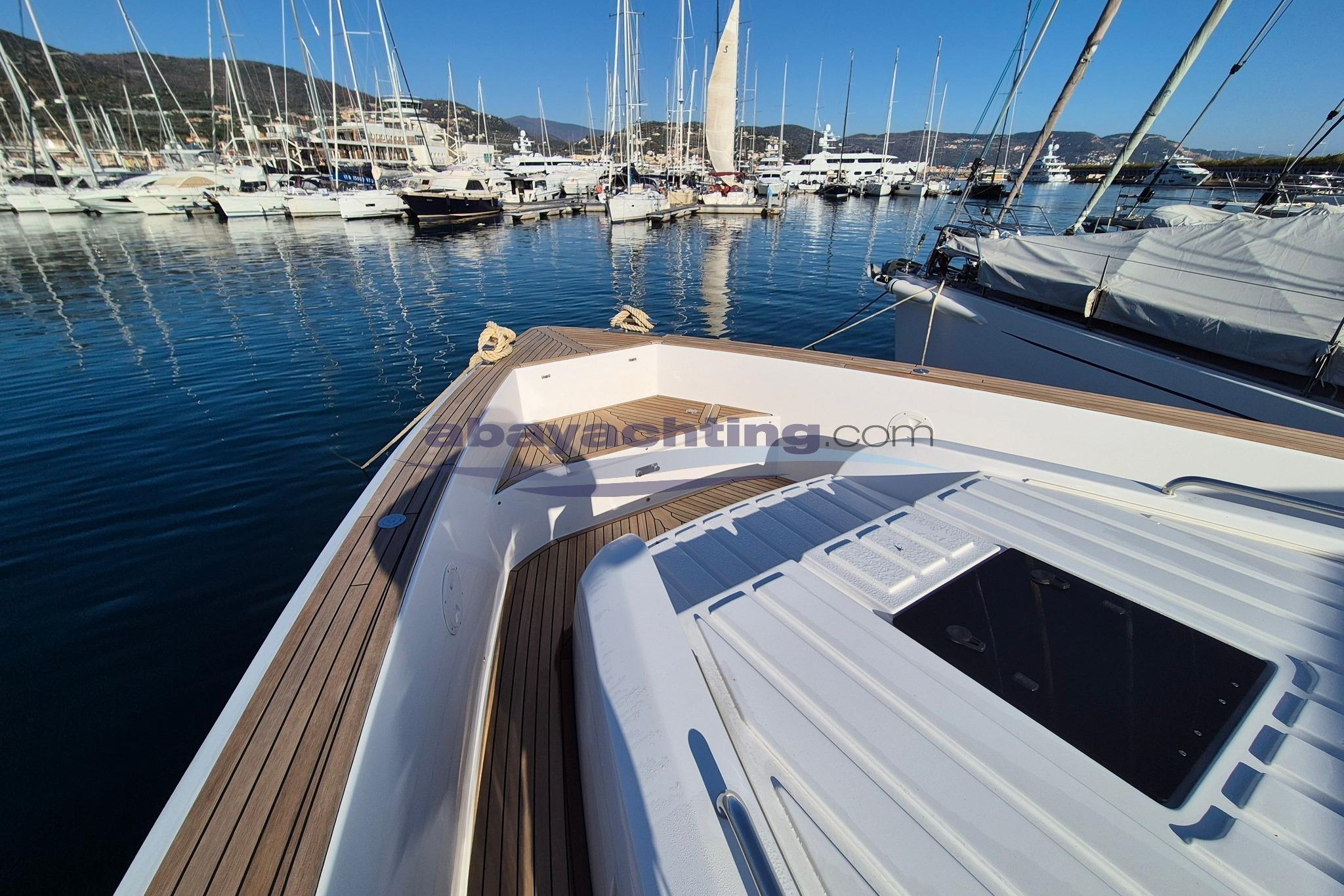 Ancora (Trefoil 25 kg. Catena 50mt.), Autoclave, 6 Batterie, Camminamenti laterali in teak, Caricabatterie, Doccia esterna, Flap elettrici (Interceptor), Garage per tender, Impianto antincendio, Luci di cortesia, Luci subacquee, Piattaforma (Idraulica maggiorata), Pompa di sentina automatica, Pompa di sentina elettrica, Pompa di sentina manuale, Porta ingresso, Pozzetto Teak, Salpa Ancore Elettrico, Scaletta da bagno, Stabilizzatori (Quick 16k), Tavolo pozzetto, Tromba, T-Top (Carbonio)
