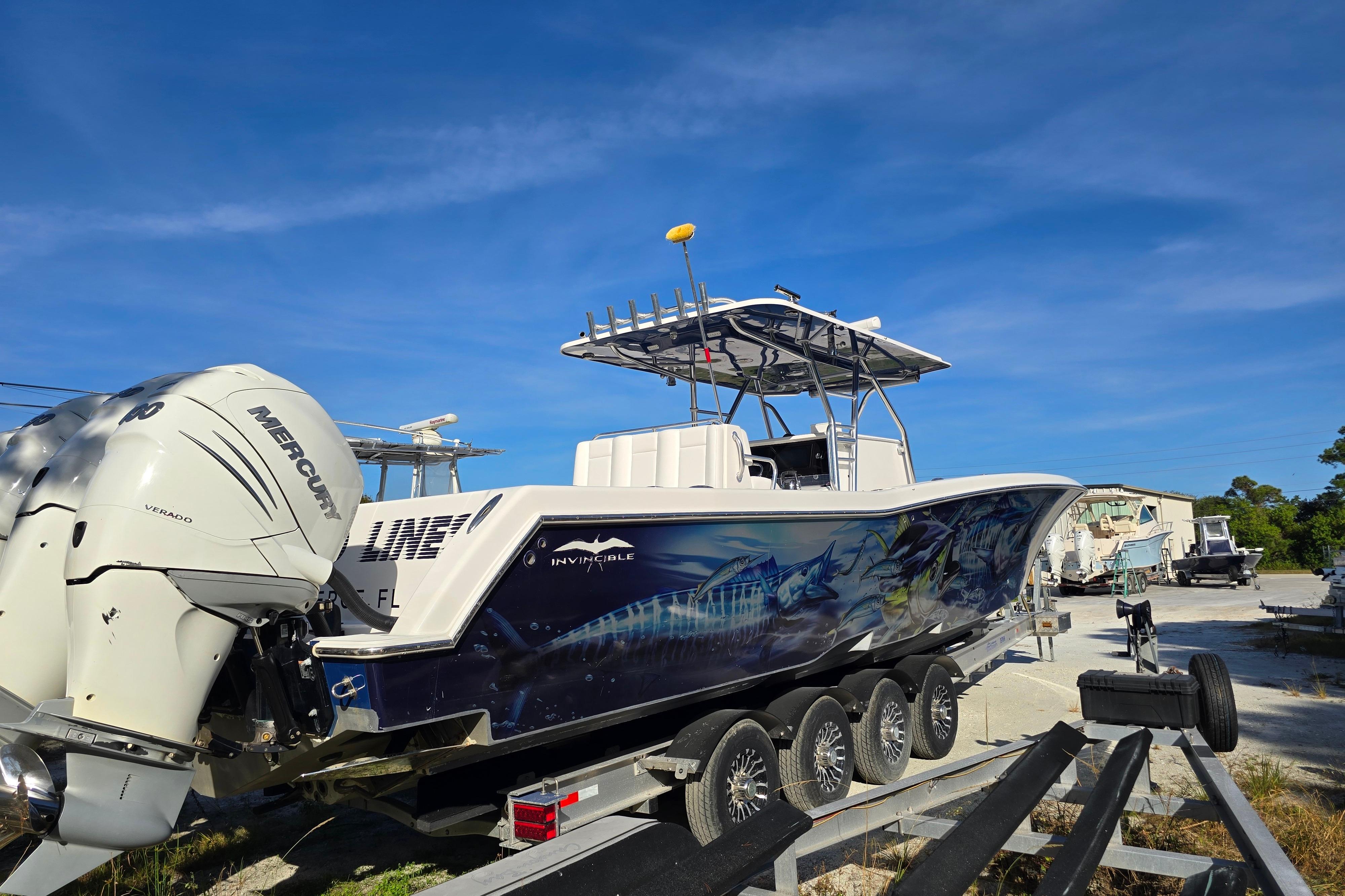 The boat presents extremely clean, with a layout built for serious fishing: expansive deck space, large insulated boxes, deep livewells, and Invincible’s legendary stepped-hull handling. A lightly used trailer (low miles, excellent condition) completes the package, making transport and storage easy.