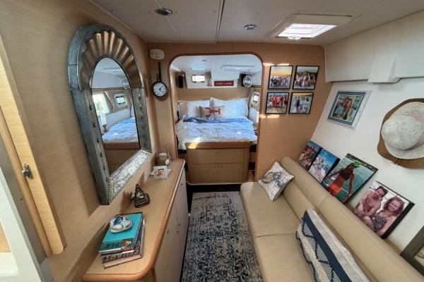 Two guest cabins to starboard each include island-style berths and private heads—perfect for family and guests.