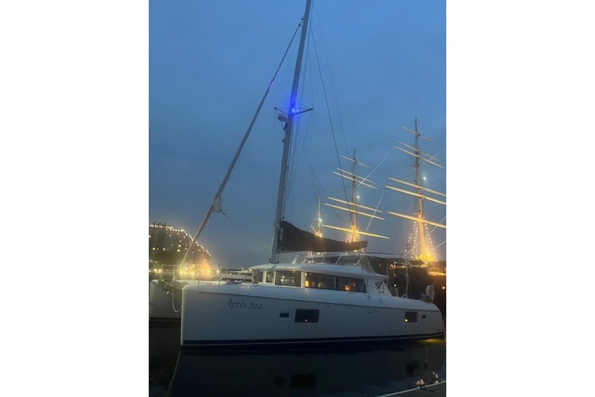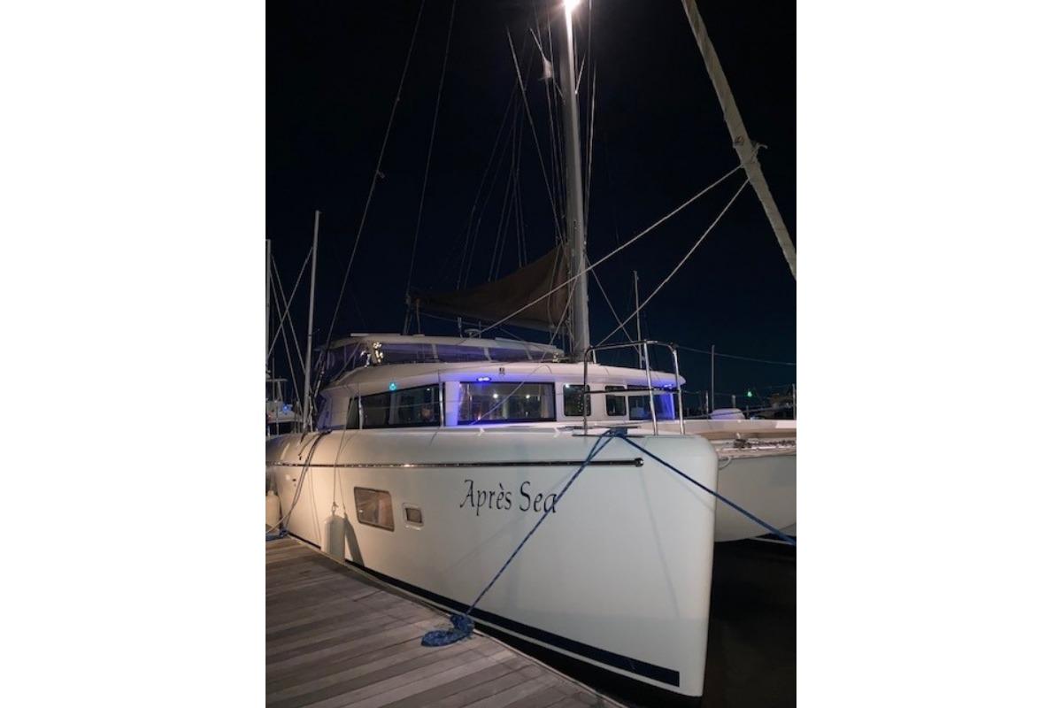 Spacious, safe, and easy to sail, Après Sea offers three cabins and three heads, with the entire port hull dedicated to a private owner’s suite featuring an island queen berth, lounge seating, desk, generous storage, and a large ensuite with separate shower.