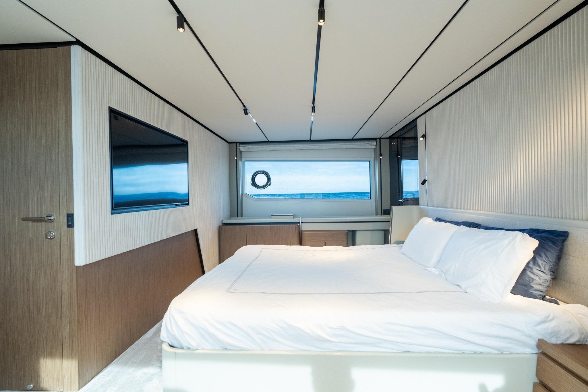 - Full-beam Master Suite amidships – A sanctuary with private en-suite, walk-in wardrobe, hull-side windows for panoramic views, and a warm, contemporary ambiance.