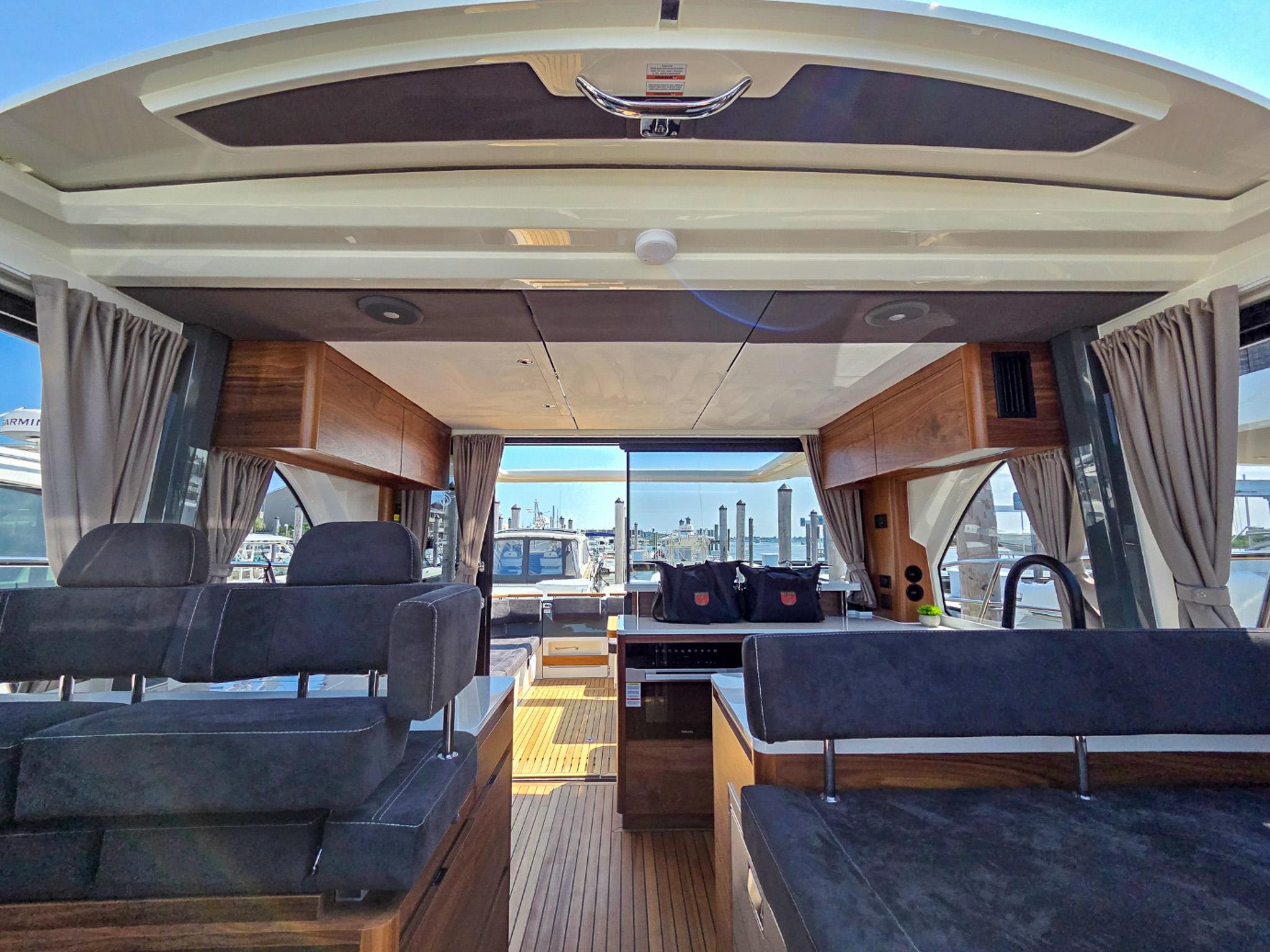 Marex Boats continue to be a trendsetter in the family boat industry, unveiling its new flagship, the Marex 440. It is a new generation of cruisers with contemporary design lines and several innovations. Witha length of 13.70 meters and a maximum beam of 4.27 meters, the Norwegian shipyard continues implementing innovative, practical onboard solutions, focusing on ergonomics, comfort and safety for the whole family.
