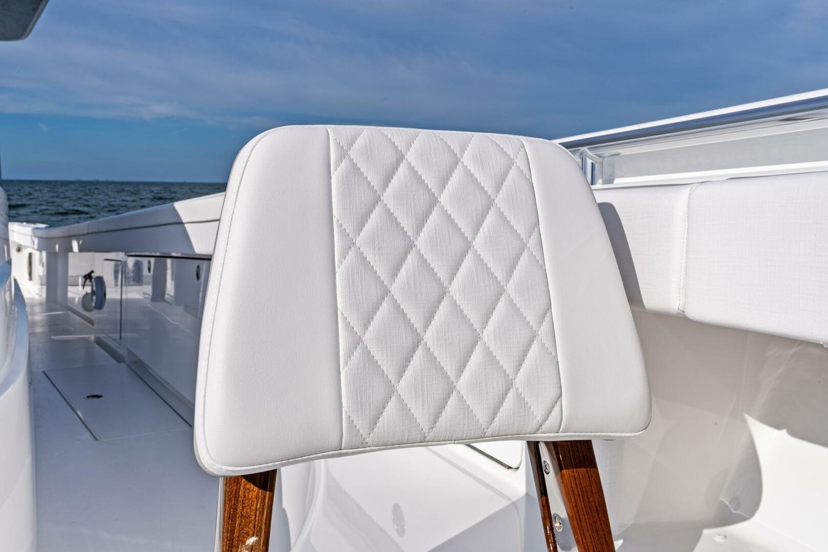 - Durable white outdoor upholstery for console lounge, bench seating, coaming bolsters and cockpit cooler seating
