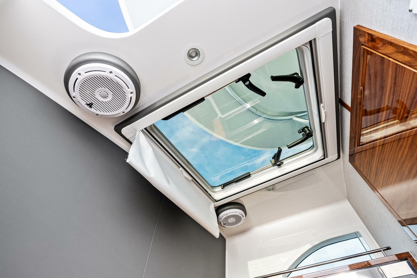 - Overhead Bomar escape hatch, opening 24” with sky screen