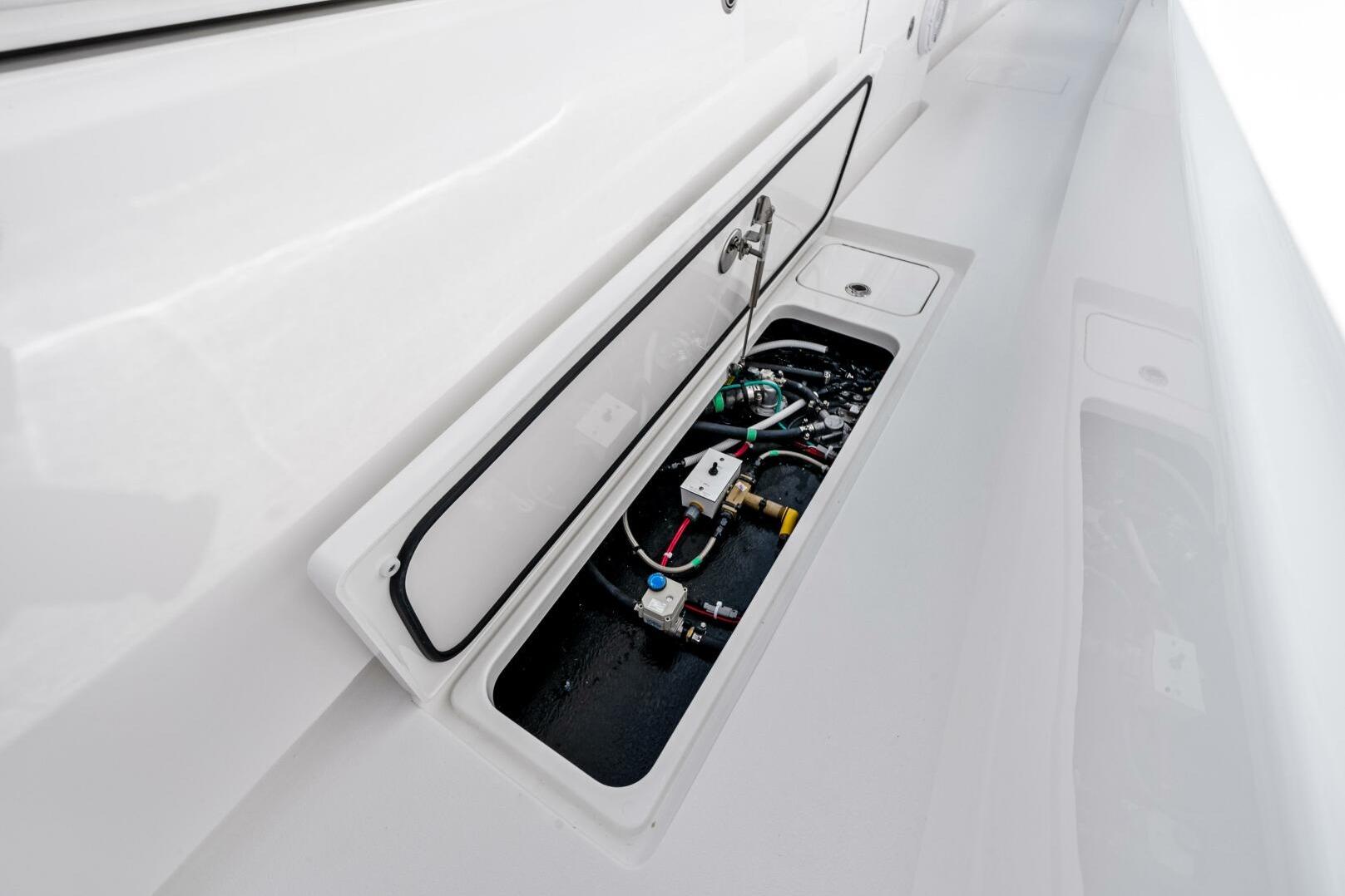 - Hooker sea chest live well system with high speed pickup and single 4500 variable speed pump with control knob at helm