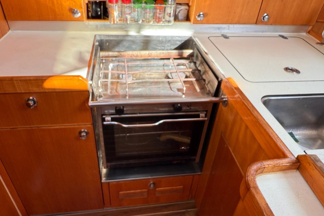 Well-equipped cruising galley.
