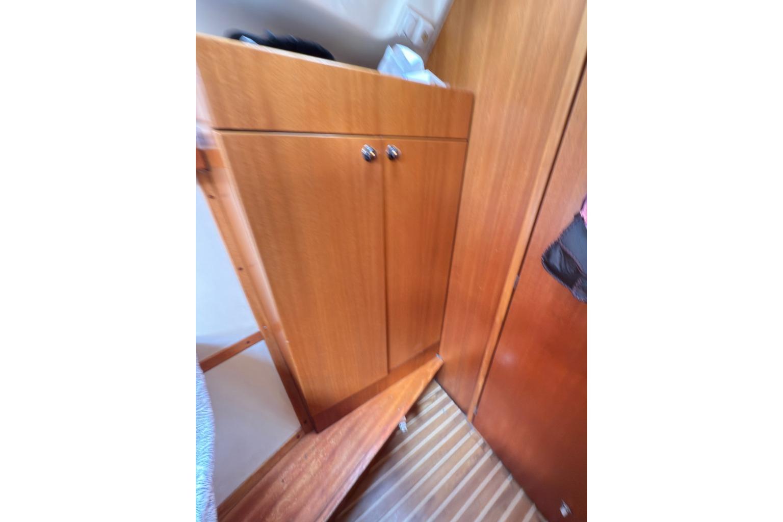 Forward owner’s cabin with generous berth and storage.
