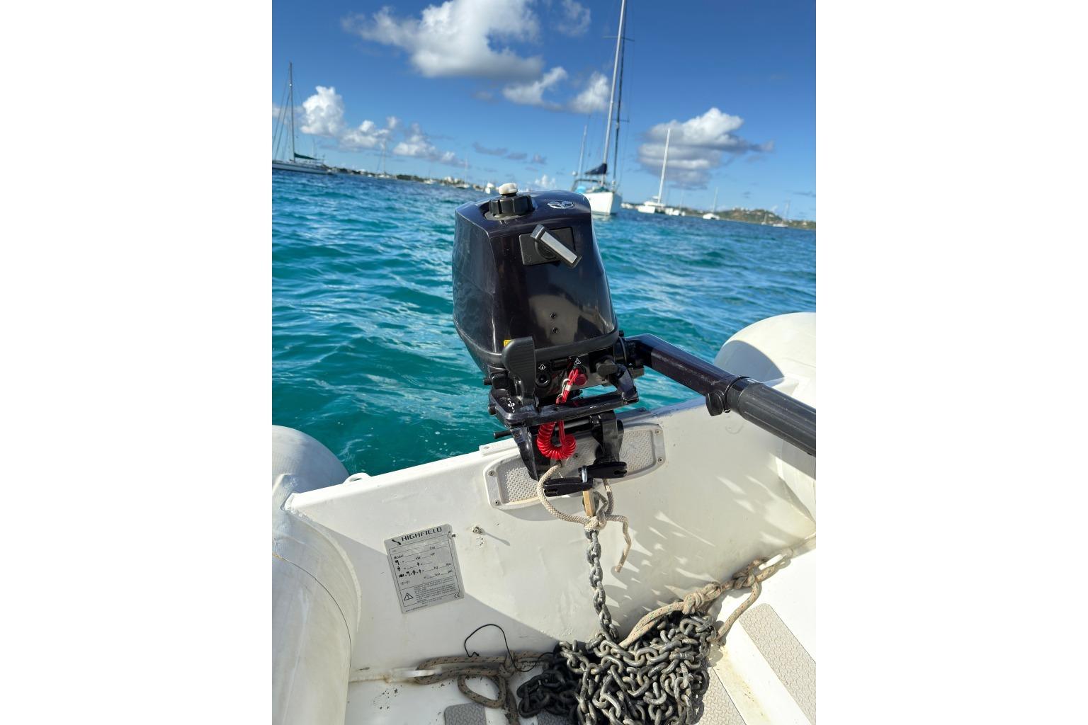 - Tohatsu 6 hp outboard (2023, +/-7 hours)
