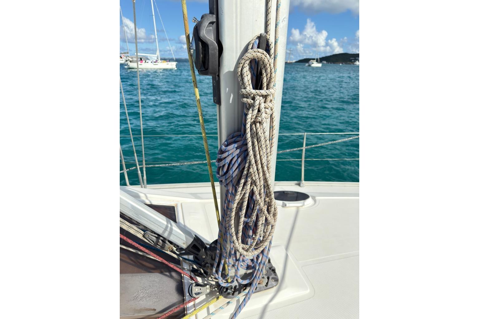 Recent investments include new sails (2024), a modern lithium and solar electrical system, a solar/dinghy arch, and a rigging service completed in 2024, making this vessel particularly attractive to buyers looking for a turnkey cruiser with reduced refit needs.