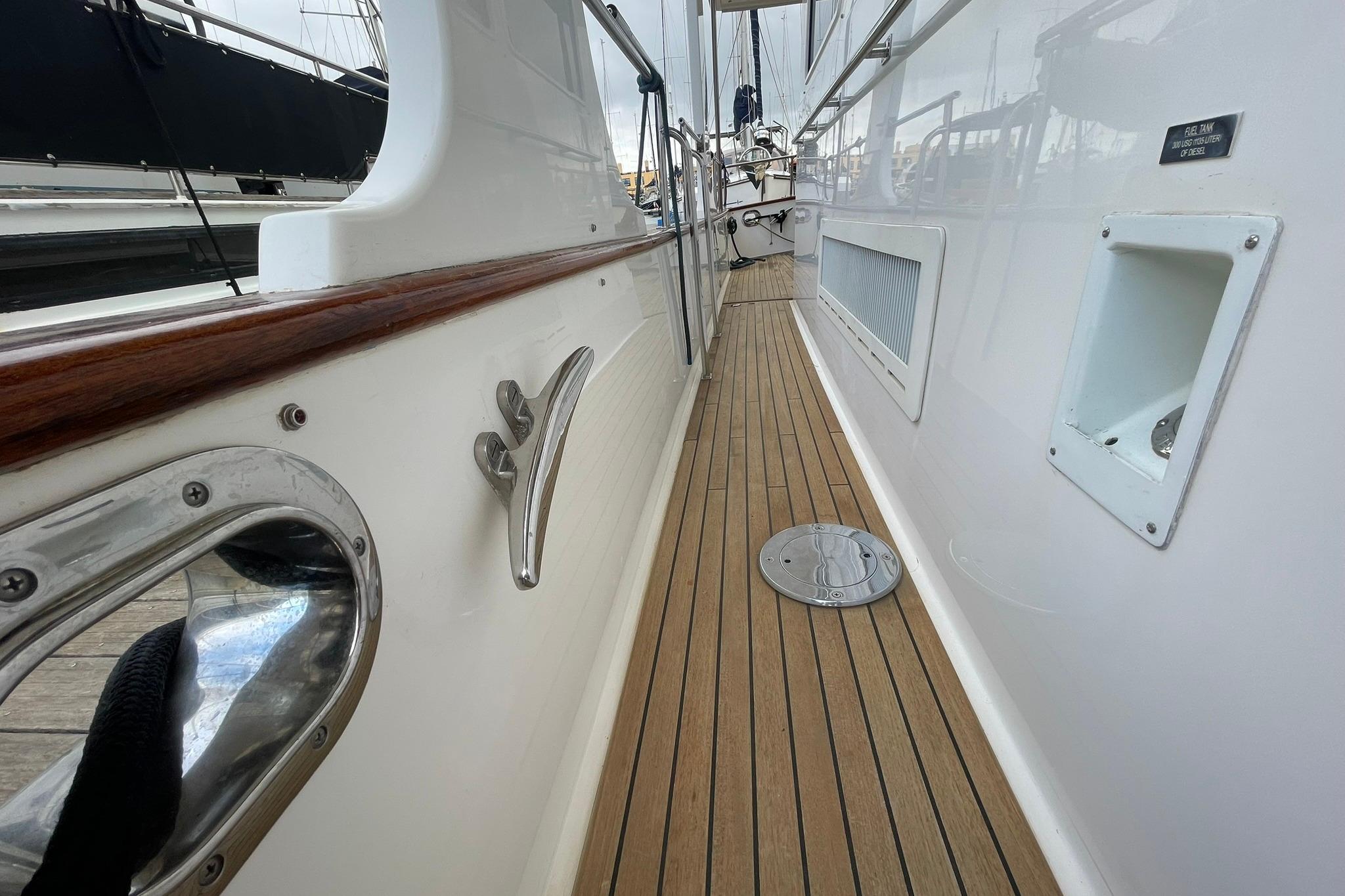 Visually, she is flawless. She has just emerged from the yard with a total hull respray that restores her showroom shine, along with fresh antifouling.