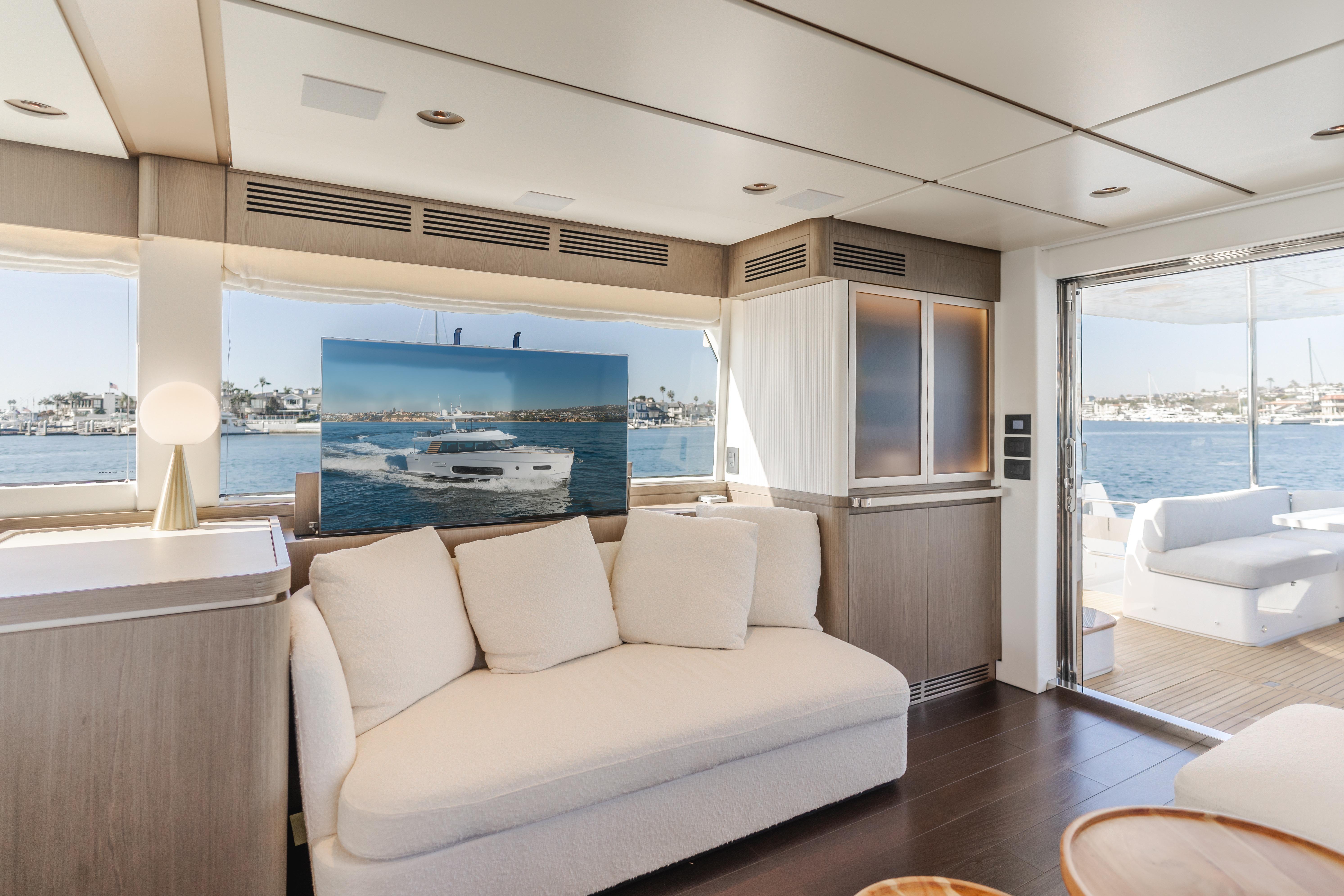 Salon furniture on starboard side with sofa and predisposition for hi-lo sytem