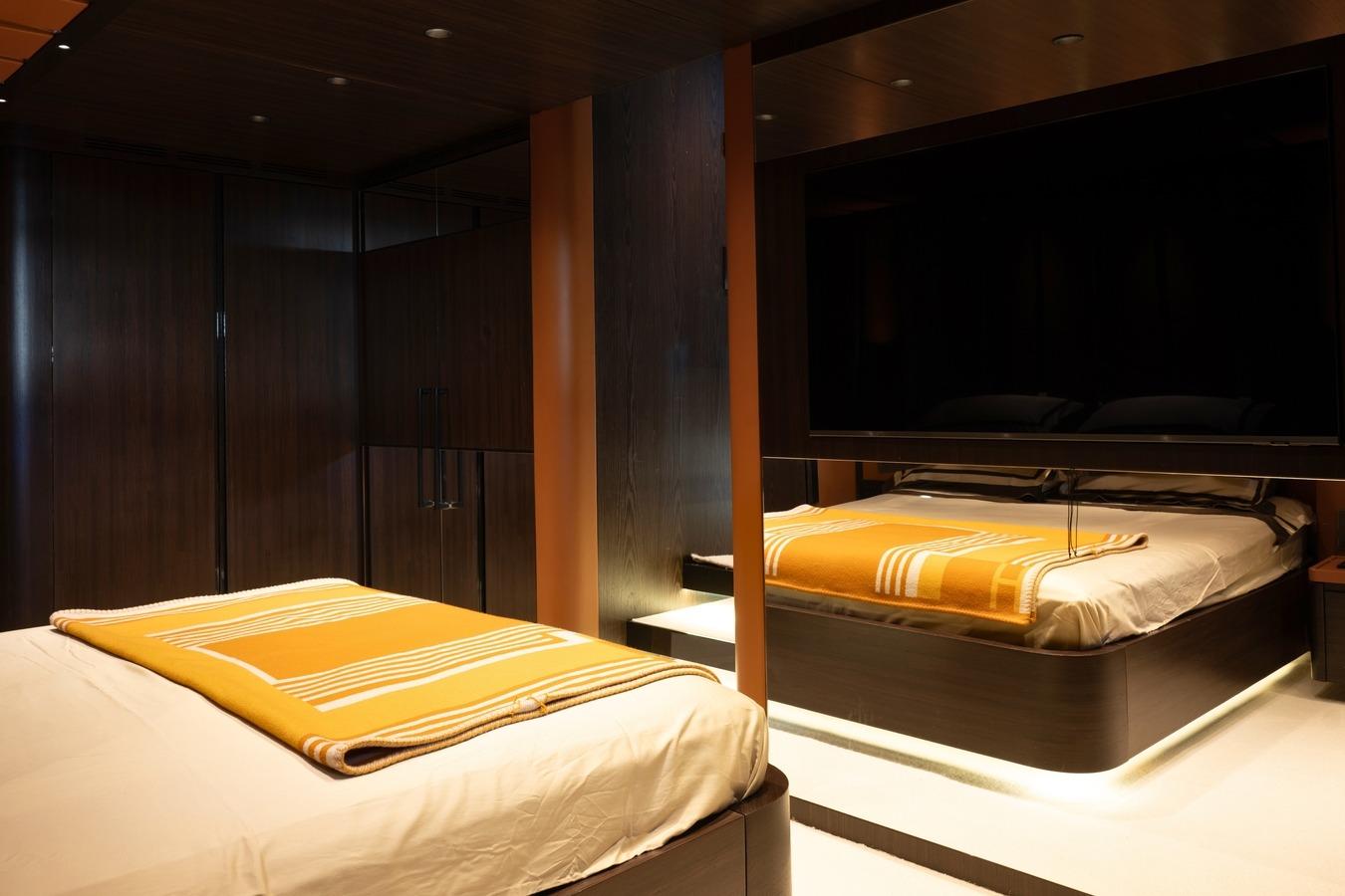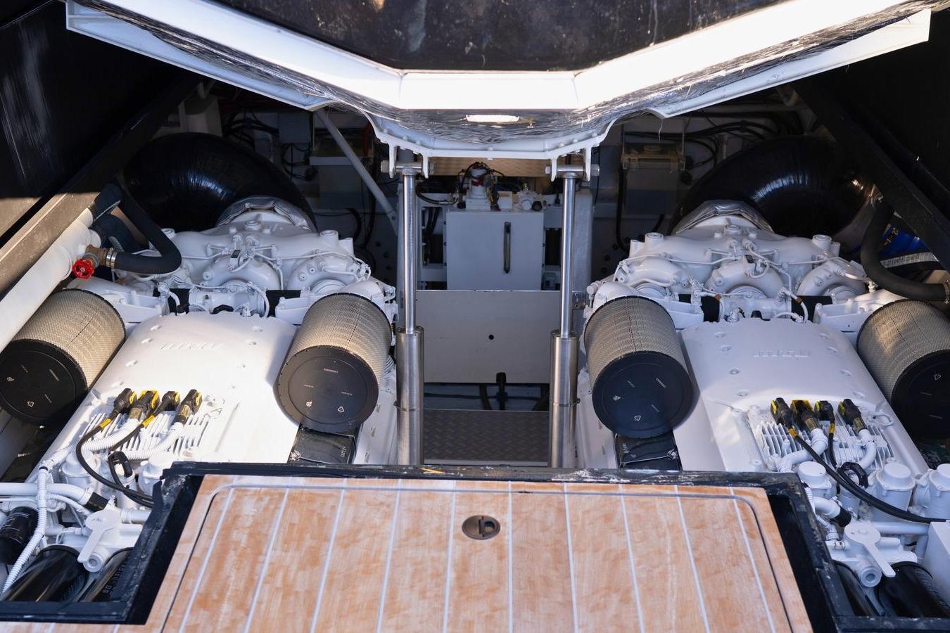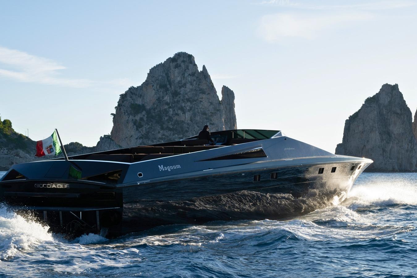 GIOCO A DUE Magnum 80 is a rare and exhilarating performance yacht, combining timeless offshore engineering with modern technology and unmistakable presence. Her aggressive, original lines immediately signal her purpose-driven design, while her twin MTU M93 engines deliver a thrilling top speed of nearly 50 knots and a cruising speed of 36 knots. With acceleration from standstill to top speed in just 45 seconds in perfect trim, she offers an adrenaline-fueled experience alongside exceptional offshore capability. Built by the legendary Magnum Marine, one of only two yachts of this size ever constructed, GIOCO A DUE represents a rare opportunity to acquire a modern classic with true performance DNA.