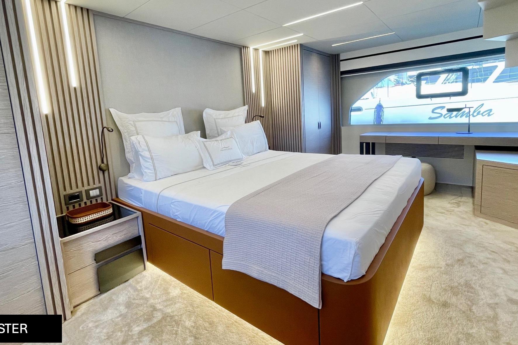 Lower deck VIP cabins located amidships for maximum stability and volume, it features expansive windows, ample storage, and refined finishes.