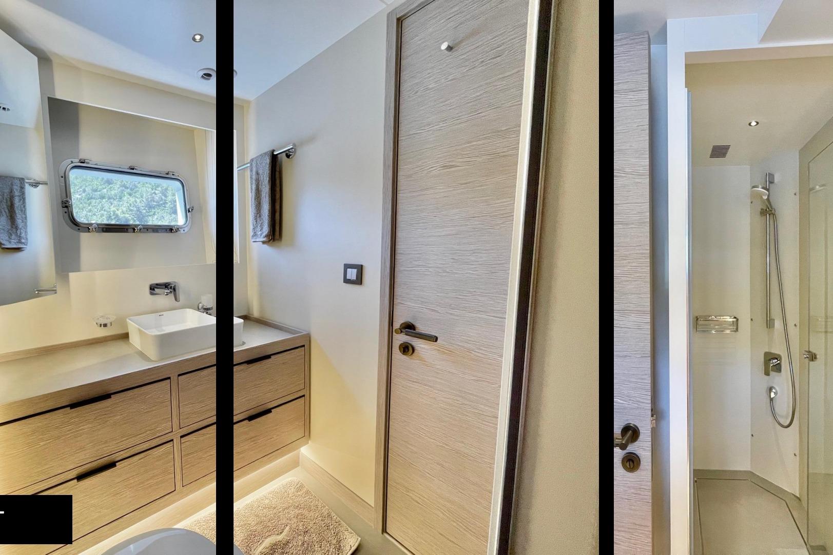 The bathrooms combine sleek, modern design with high-end finishes, offering a level of comfort and elegance rarely found in an explorer yacht of this size.