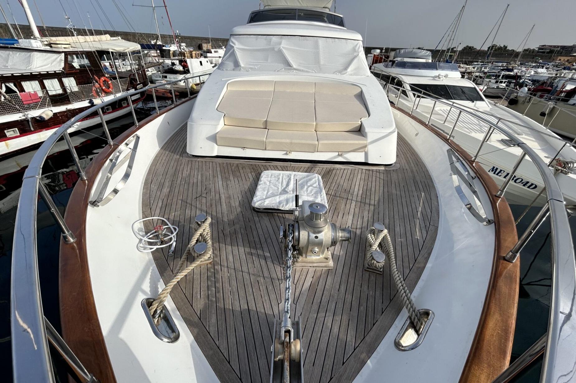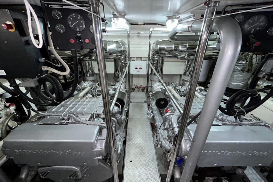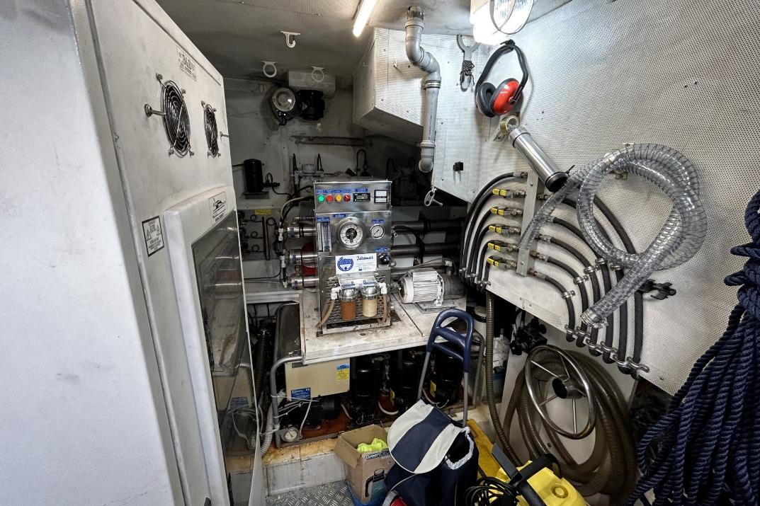 Work completed in 2023: Replacement of metal-cored pipes in seacocks, generators, water pump, watermaker, and where necessary. CO2 fire extinguishing system overhaul with certification. Water extinguishing system overhaul. Replacement of all batteries (service, engine, and generator). Replacement of through-hull fittings and seacock valves. Packing maintenance. Hydraulic bow thruster overhaul, including engine PTO. Exterior cushions overhaul, including sponges.