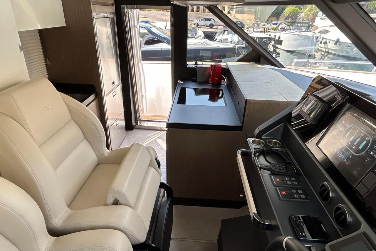 The Shuttle configuration of this yacht provides for the separation of the guest area from the kitchen and the helm station, the latter are also accessible via a side door.