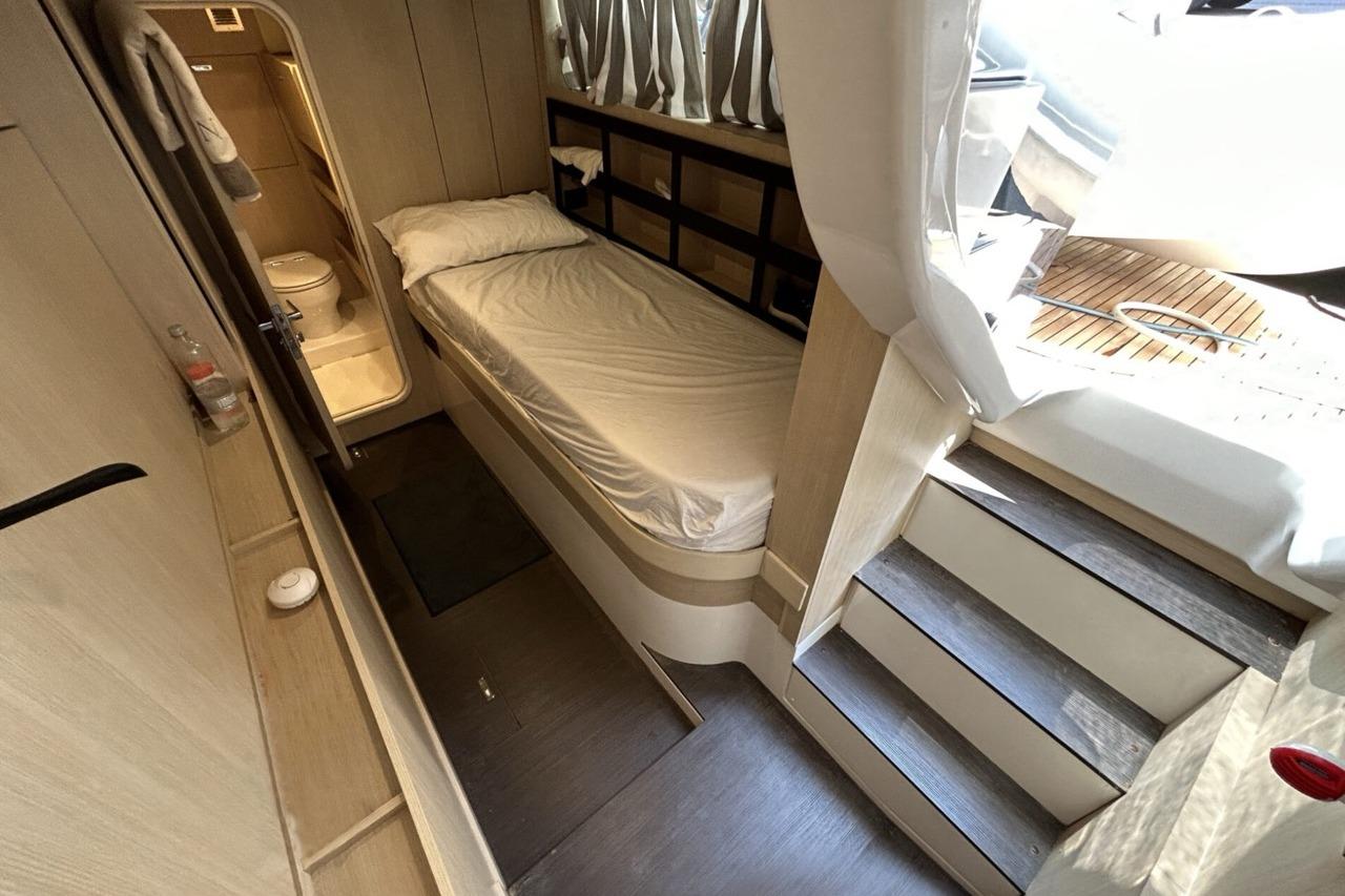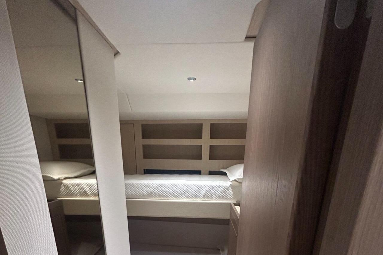 Crew Cabin with separate external access, equipped with a single bed and an additional foldaway bed to accommodate two crew members; equipped with a bathroom and shower.