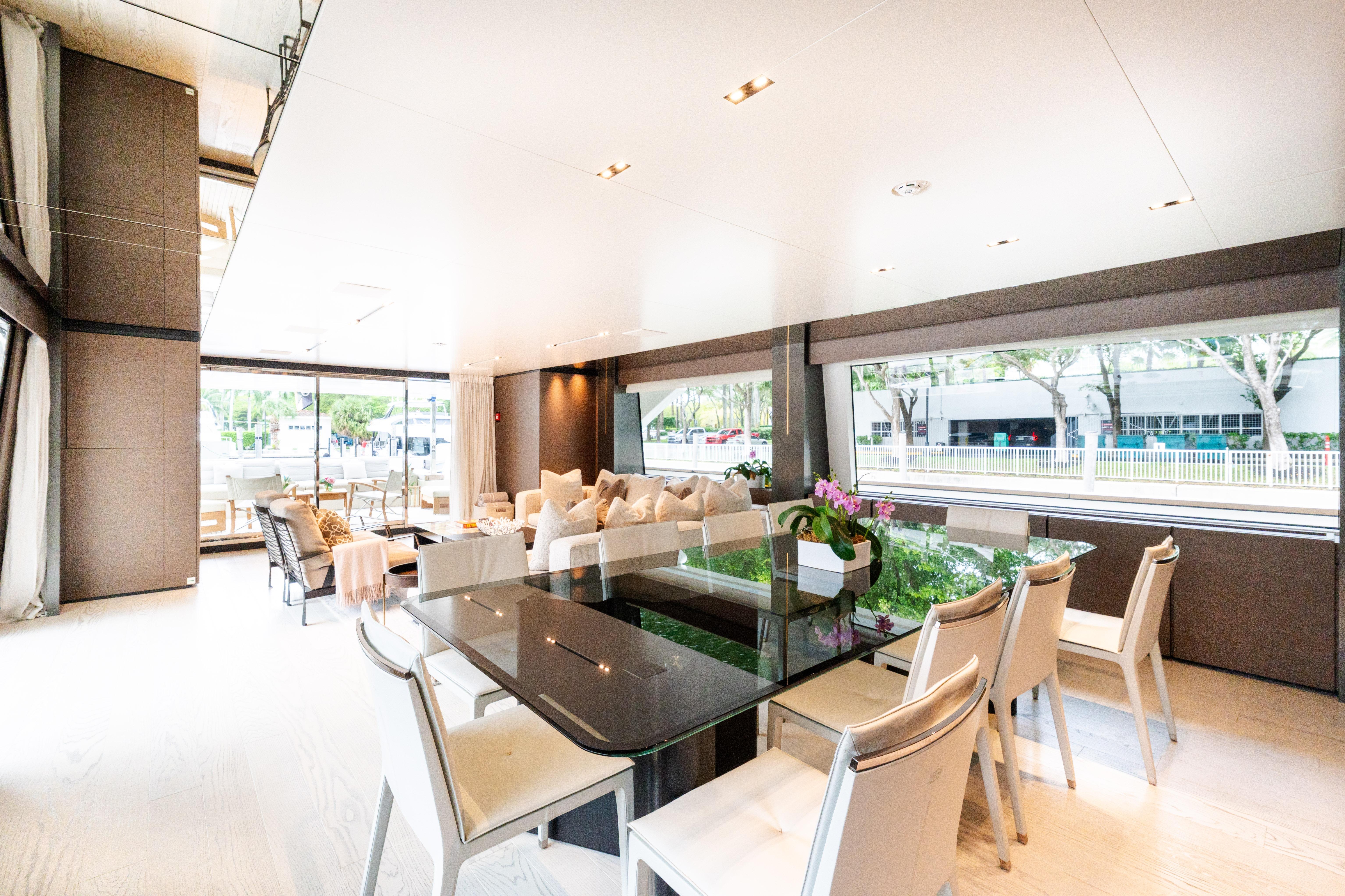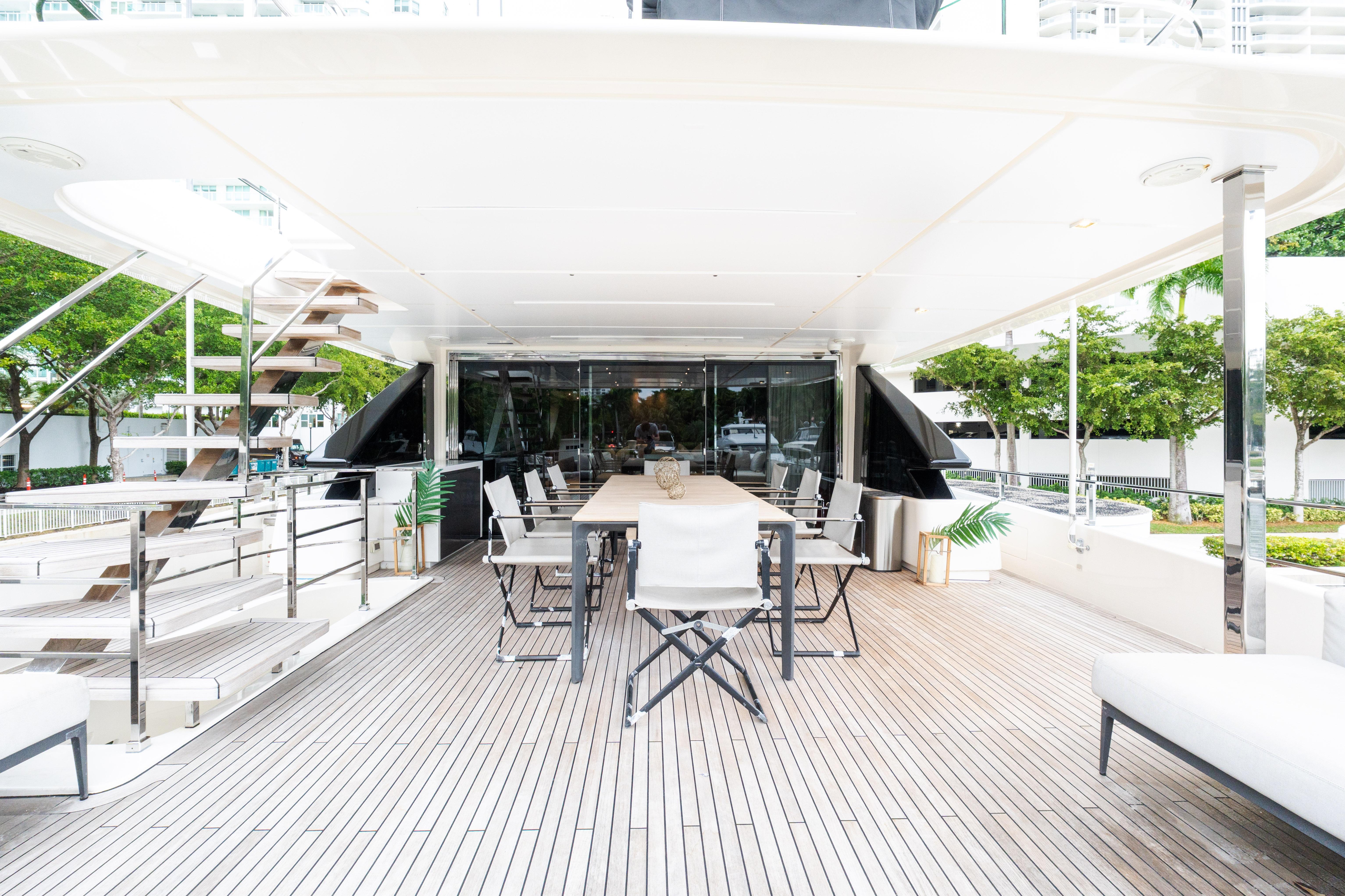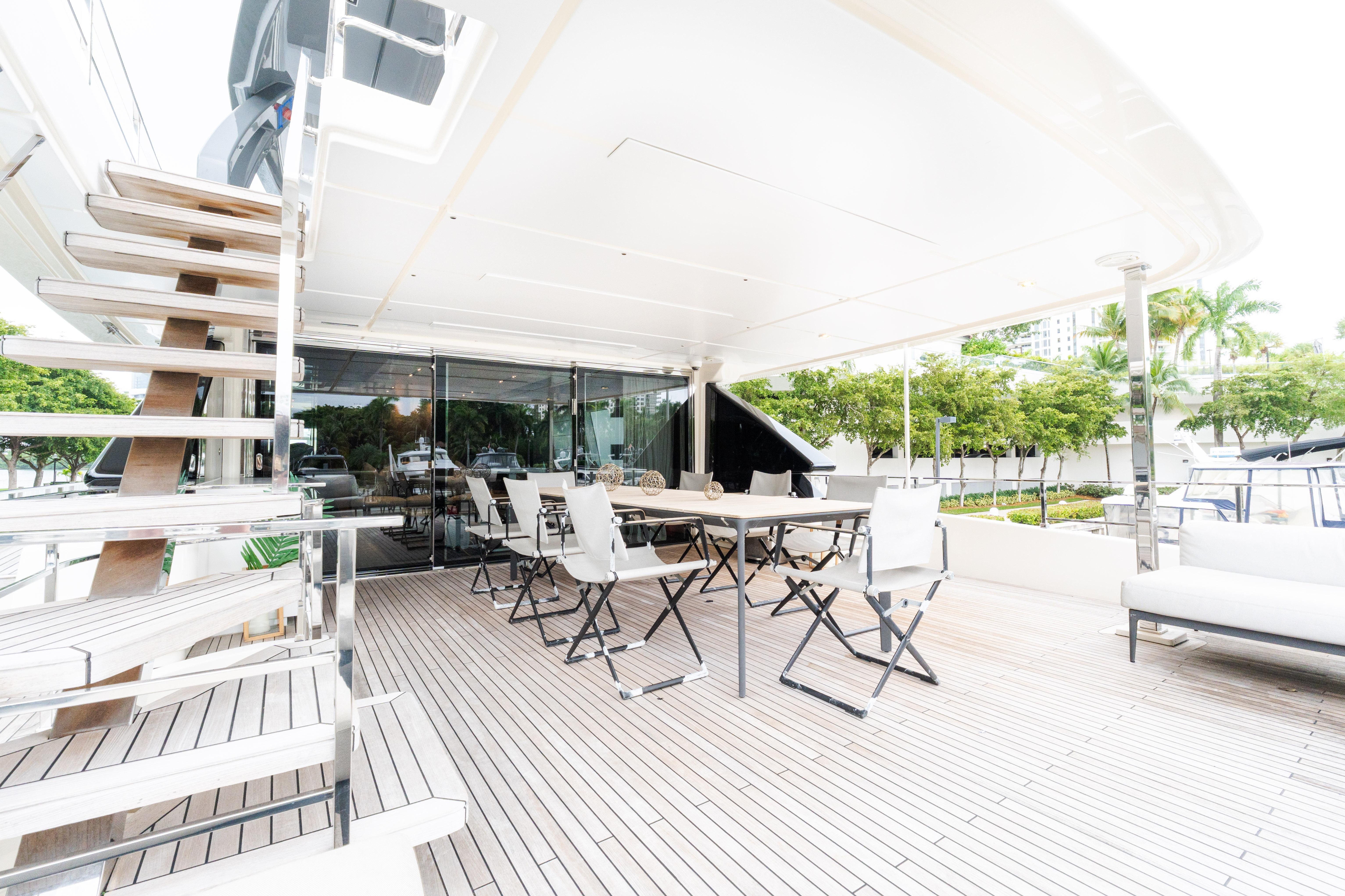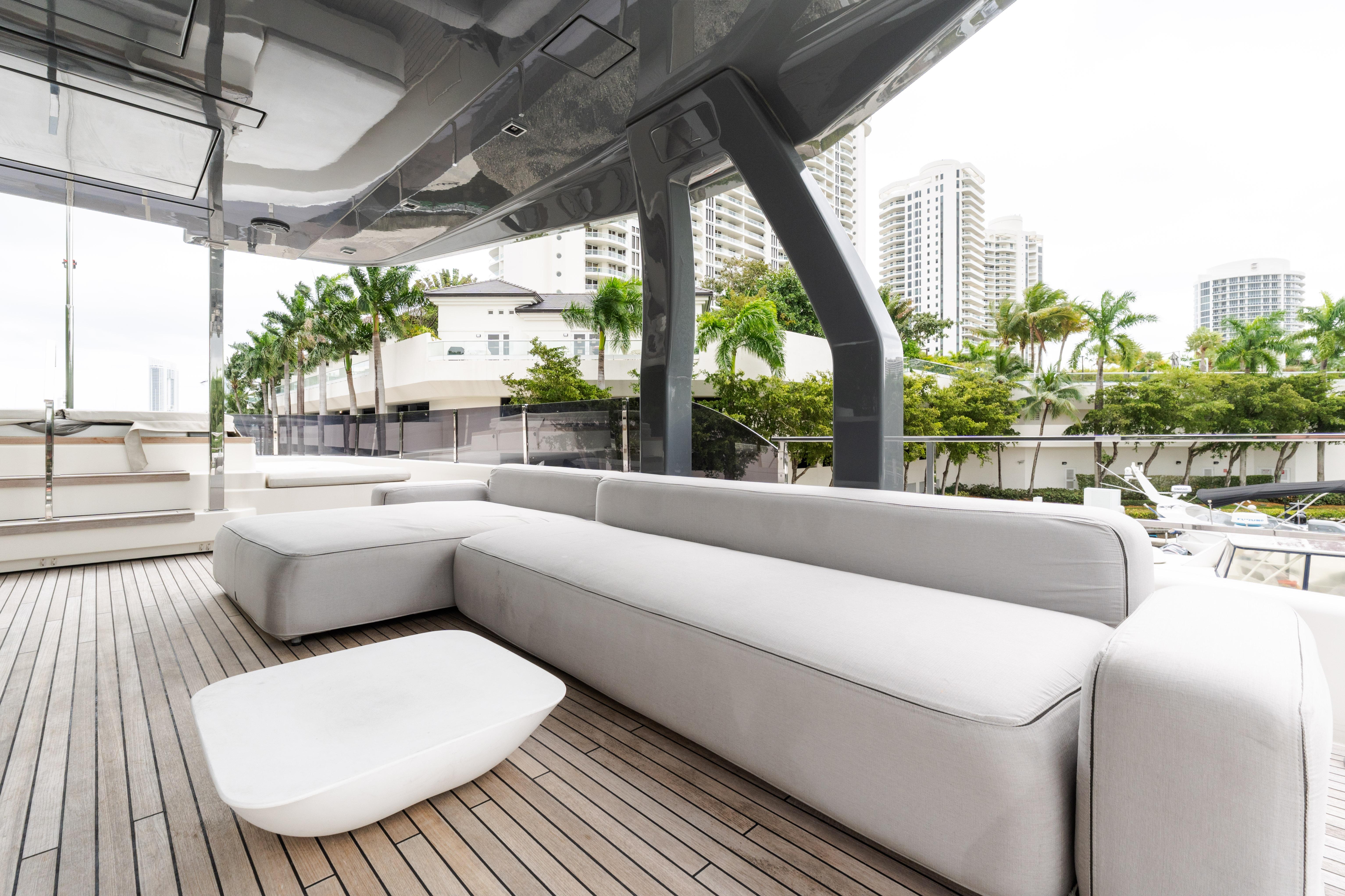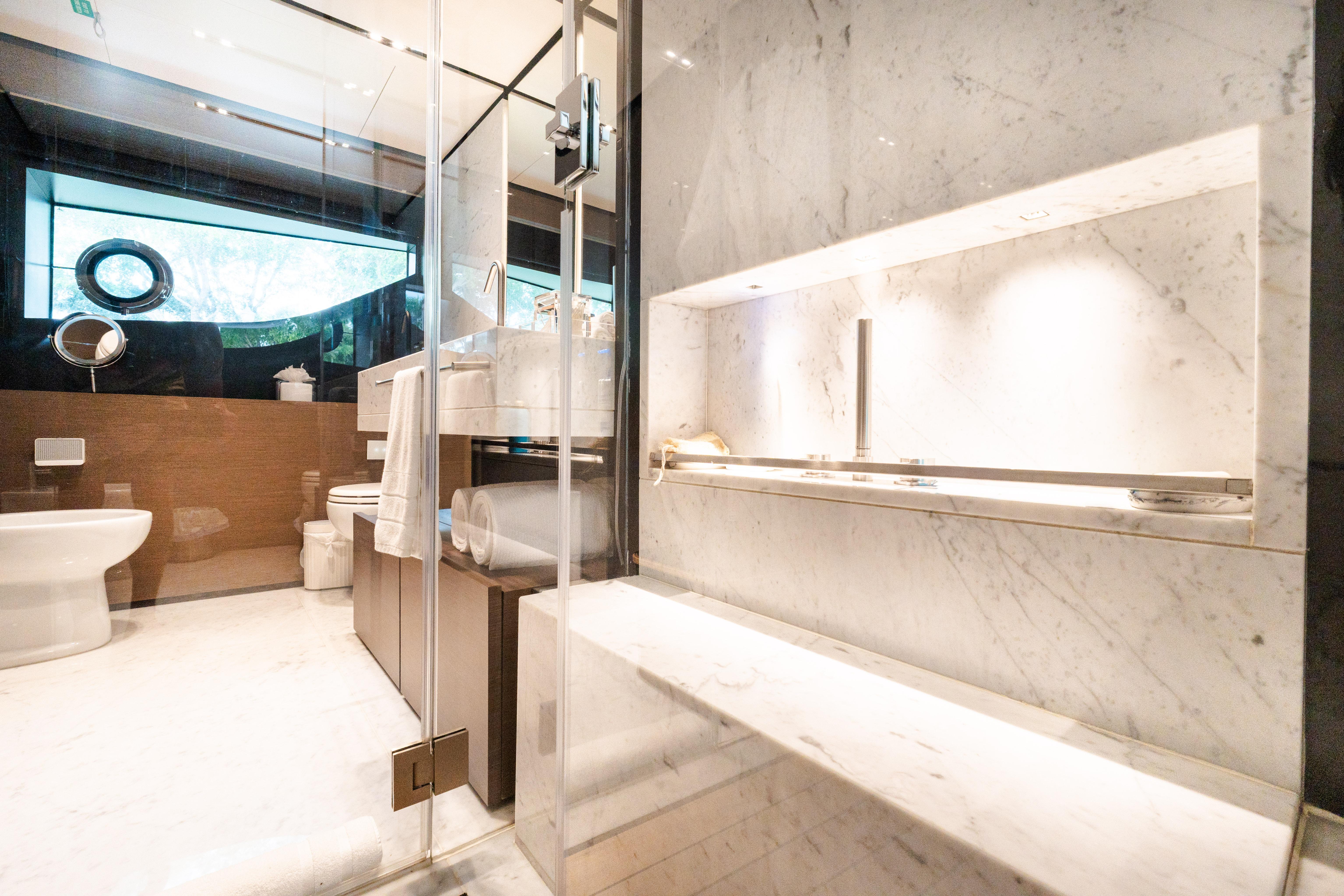 In a world that, now more than ever, is in need of beauty, the Navetta 33 exudes the subtle charm of an alluring and sophisticated diva of the waves, enticing with its beguiling blend of styles, forms and inspirations. Nothing is quite as chic as the new Custom Line semi-displacement yacht, which caters to the desires of every owner who wishes to savour the joys of sailing by making the step up from simple luxury to genuine refinement. The Navetta 33 is the product of the joint efforts of the Product Strategy Committee, headed by Piero Ferrari, along with the Group’s Engineering Department, whose architects and designers worked on the interior design, and Zuccon International Project, which was responsible for the exterior design. This yacht (108.3 ft.) introduces considerable technical advances to the line, which serve to complement the innovations that have already been admired in previous Custom Line models. For instance, the hull features a bulbous forward section and delivers performance at the top of its class in terms of seaworthiness and stability, with a range of up to 2,000 nautical miles at economical cruising speed. In addition, yacht owners and their guests can make the most of marvellous spaces across all 4 decks: from the wide-body master suite forward on the main deck, to the 4 guest cabins on the lower deck. The Navetta 33 furthermore features all of the technical innovations presented on Custom Line’s latest models: the patented DMT system for optimum use of the stern area; VOTIS software for flexible, practical management of the infotainment systems on board; and an integrated helm station, for completely safe sailing and monitoring of the systems and equipment on board. Absolute comfort is also guaranteed in terms of stabilisation when at anchor and when mooring, thanks to electro-hydraulic stabilising fins with zero speed mode.