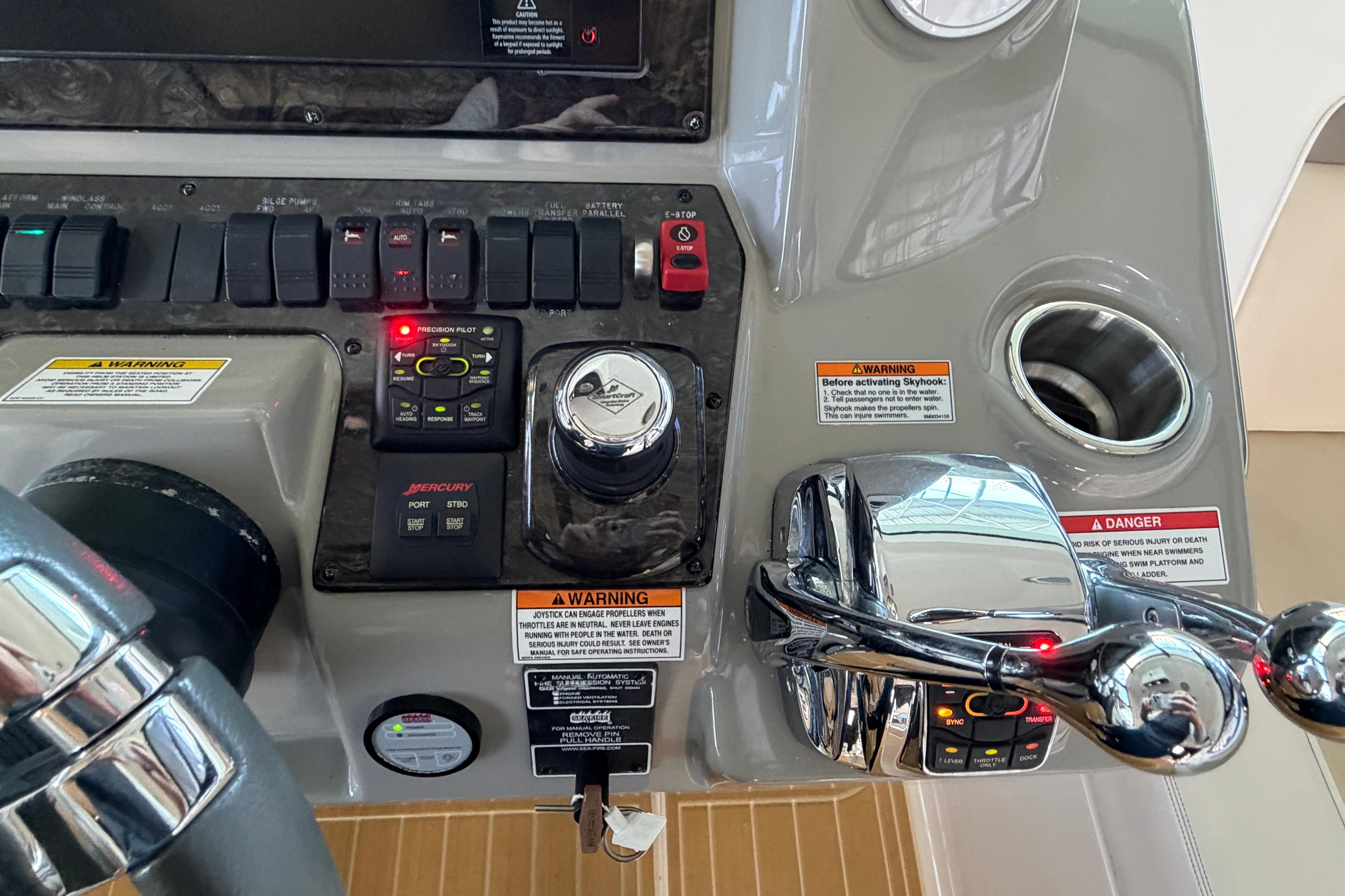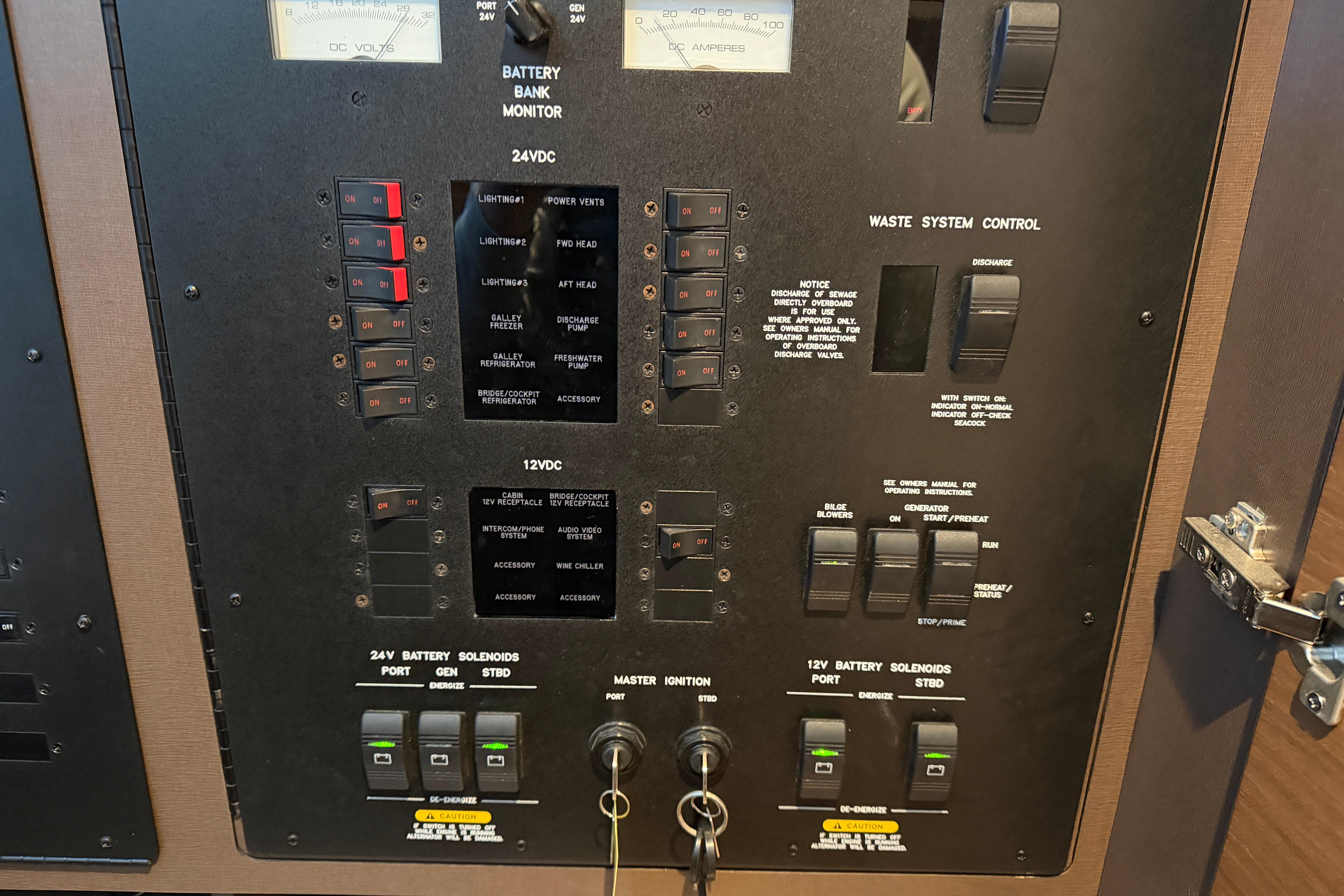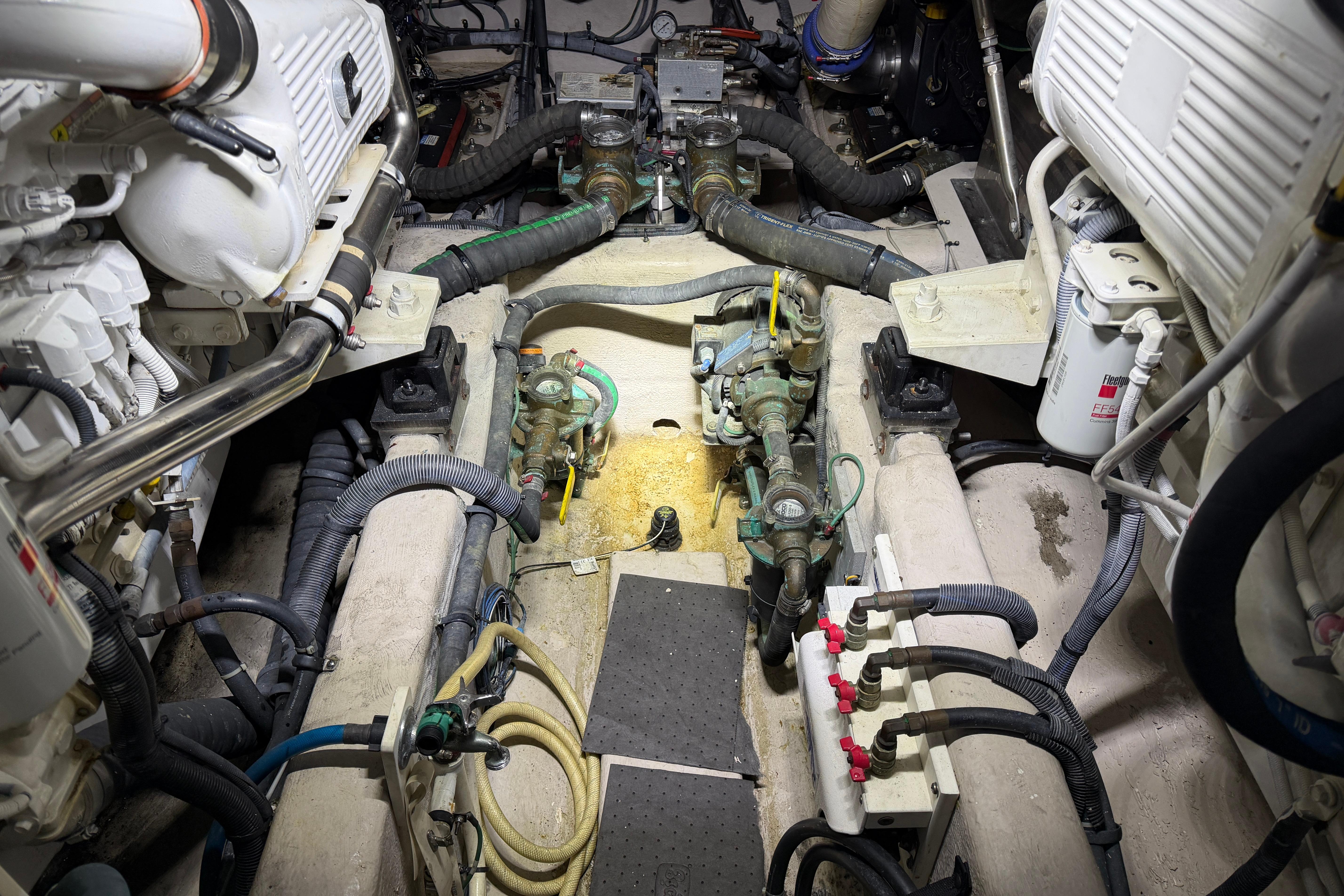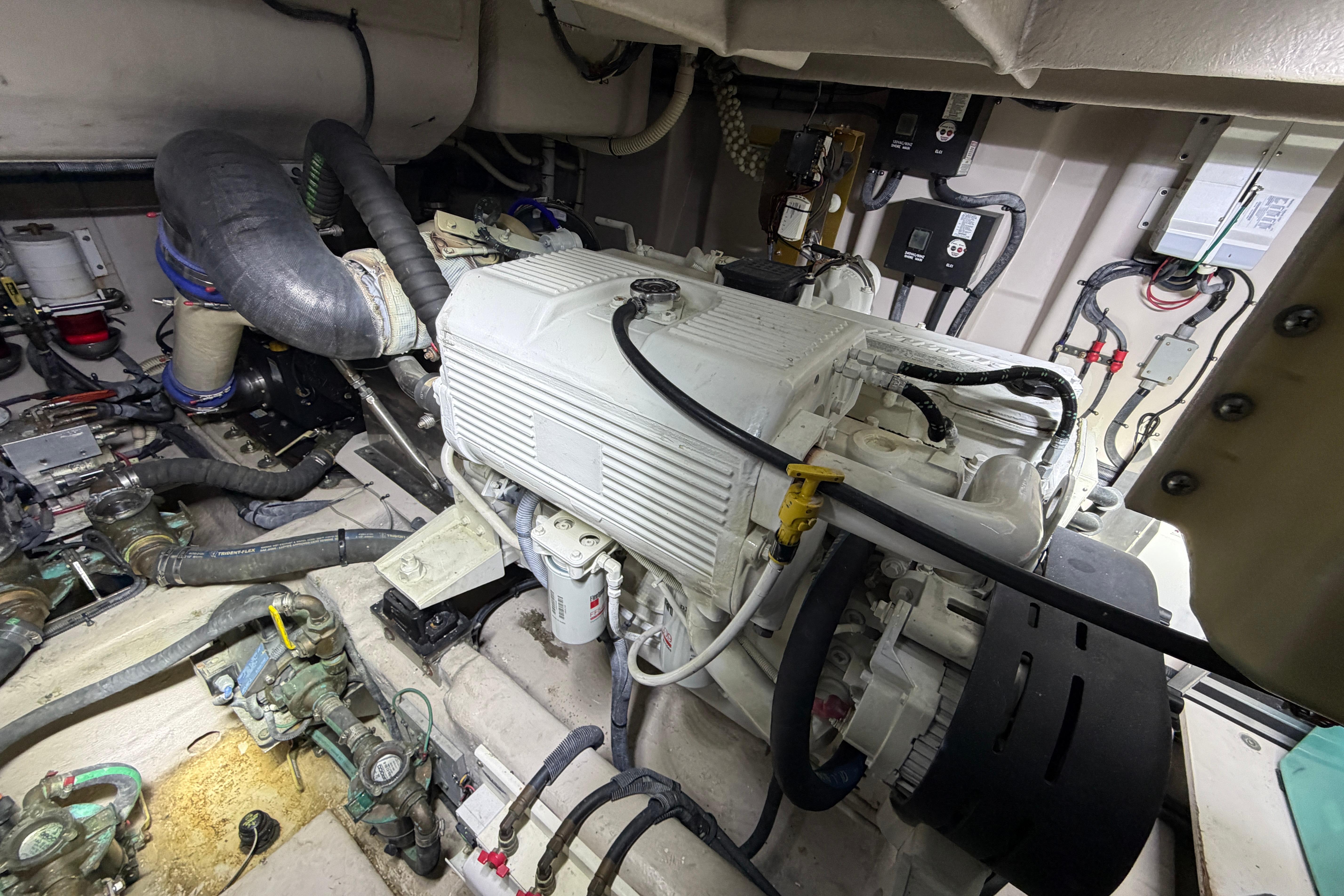 This boat has been maintained professionally with an open checkbook and no expense spared. The boat is equipped with twin Cummins QSC-600 engines with ONLY 1050 hours on the clock. 1000-hour service completed. The boat features Mercury Gen 3 Zeus Pods with joystick control, making the boat maneuverable in any situation. The pods were replaced a few years ago and have all service records showing all maintenance that has been completed by certifed mercury/Cummins techs. The Generator is a Cummins Onan 21.5KW with ONLY 1432 hours on it.