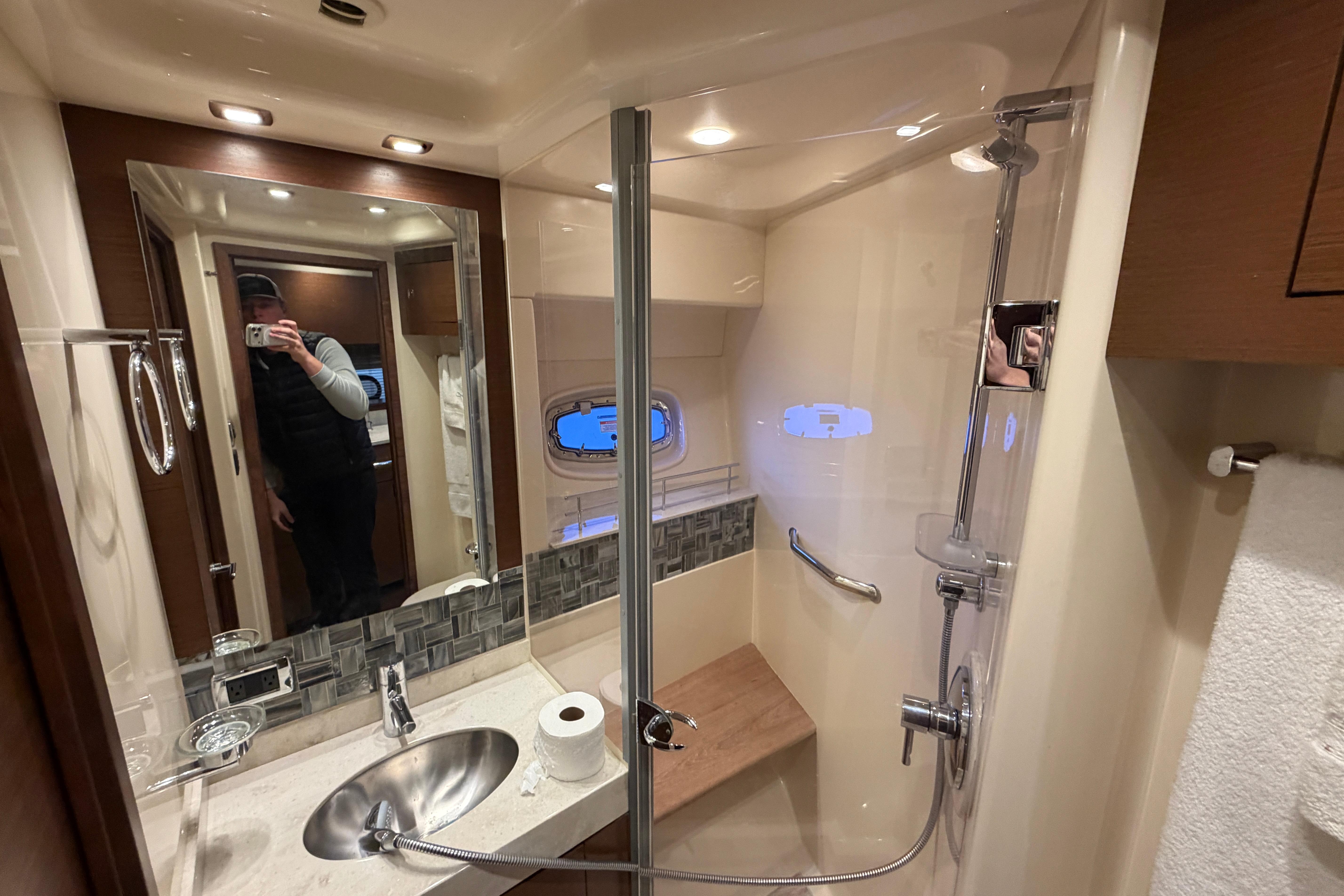 - Shower w/Teak Seat, Adjustable Shower Wand & Acrylic Door
