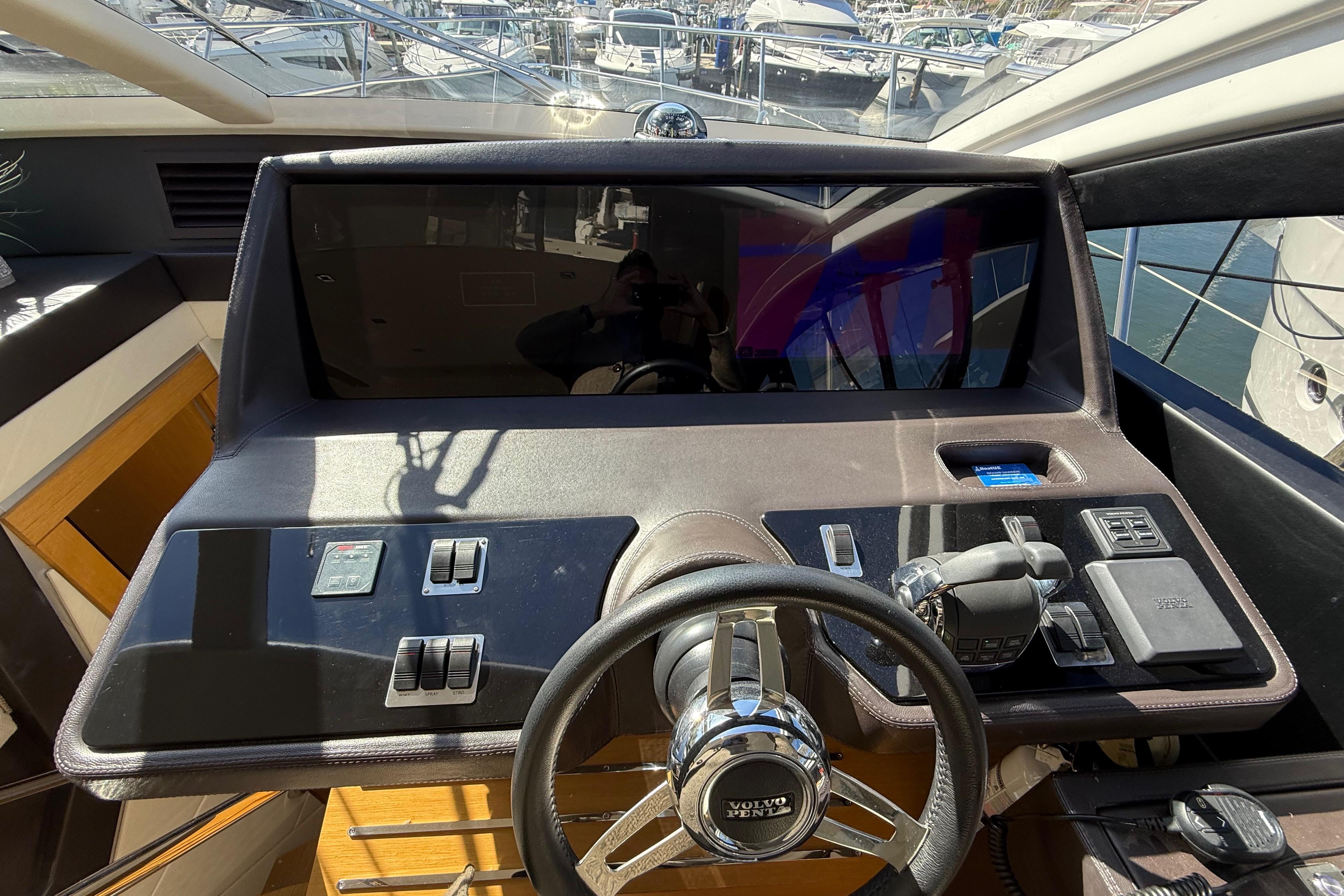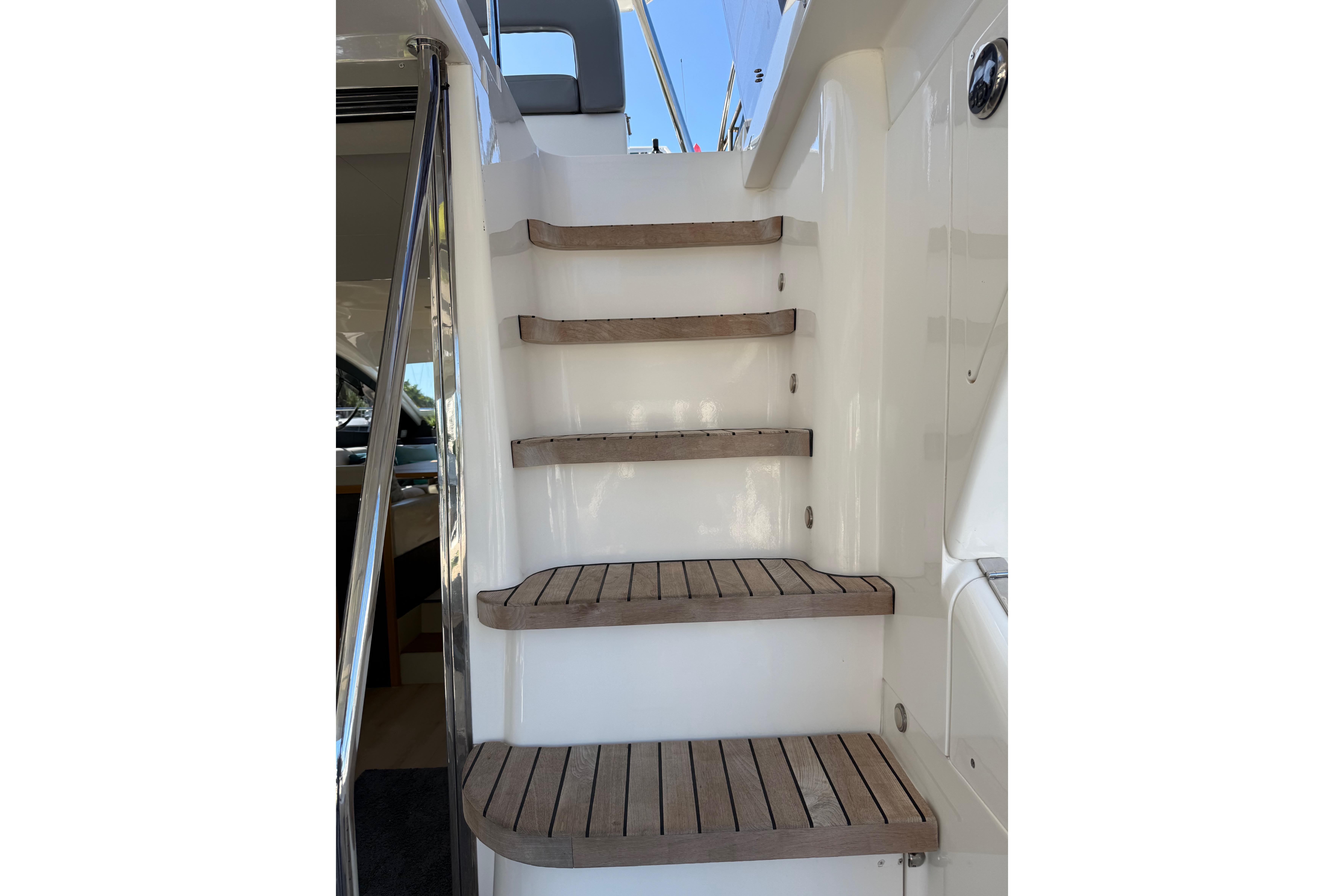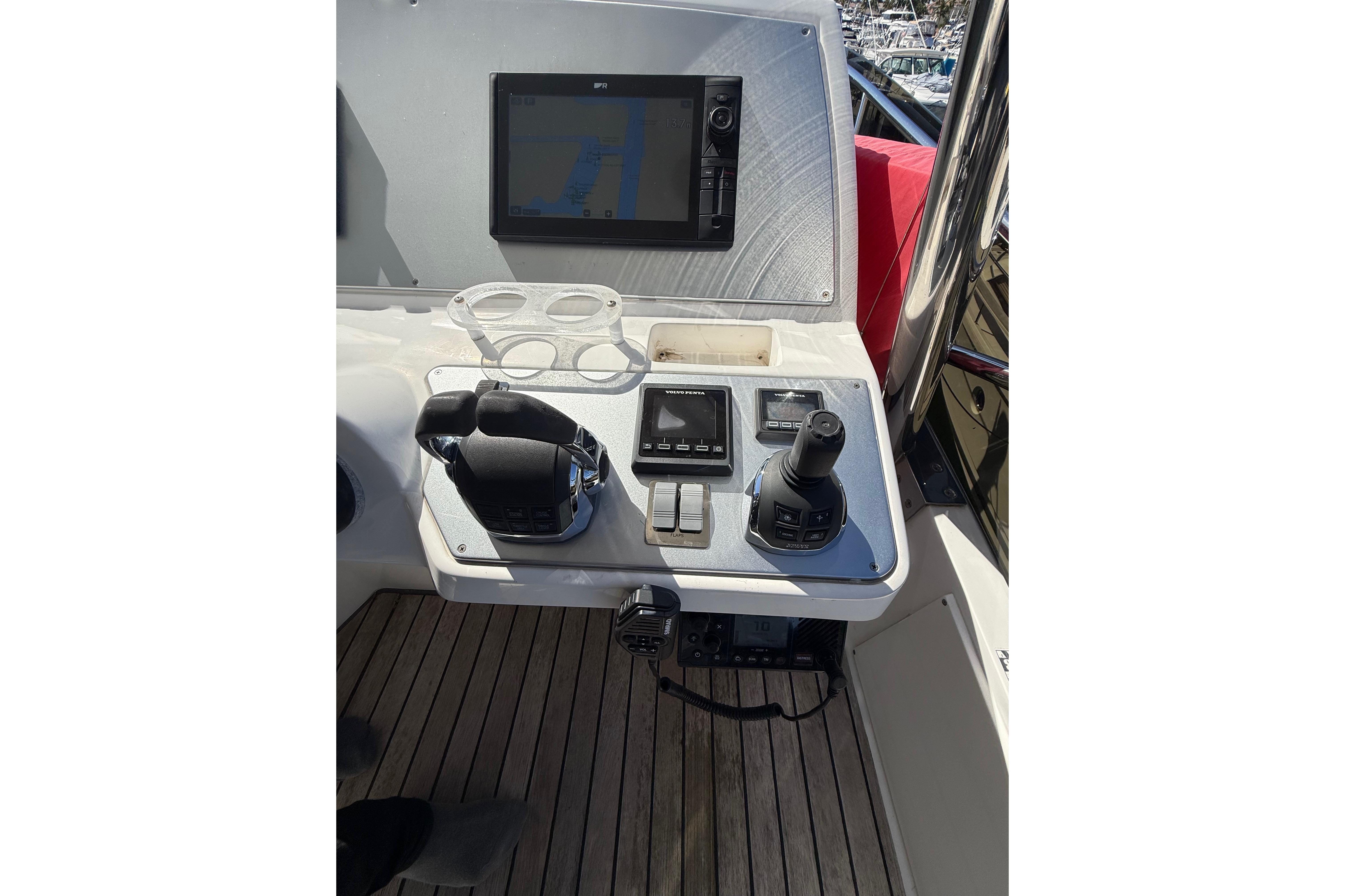 Standard Features Typically Include: Air conditioning, galley with cooktop, refrigerator and microwave, hydraulic swim platform, flybridge with seating, autopilot and multifunction displays at helm (specific equipment can vary by boat and dealer)