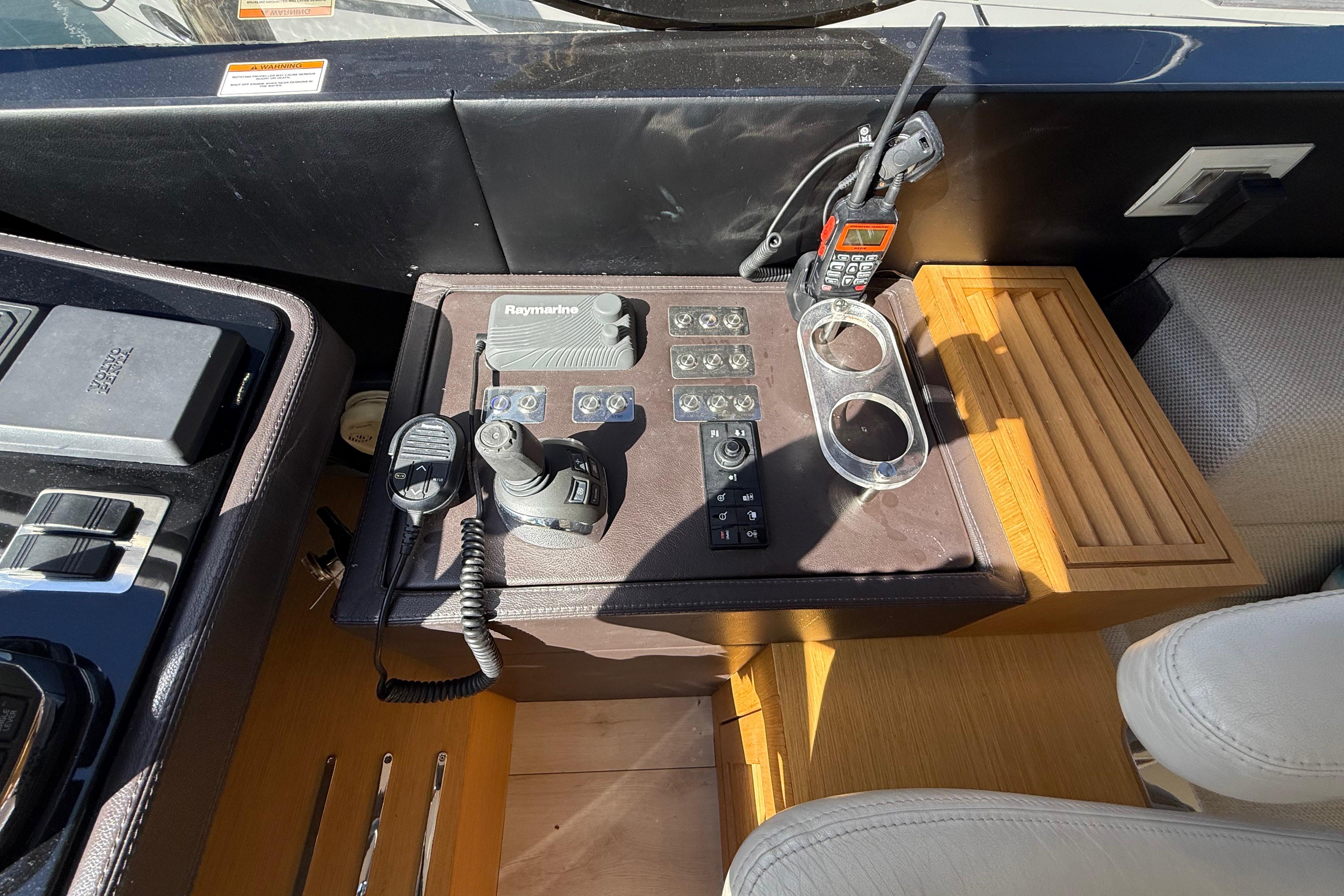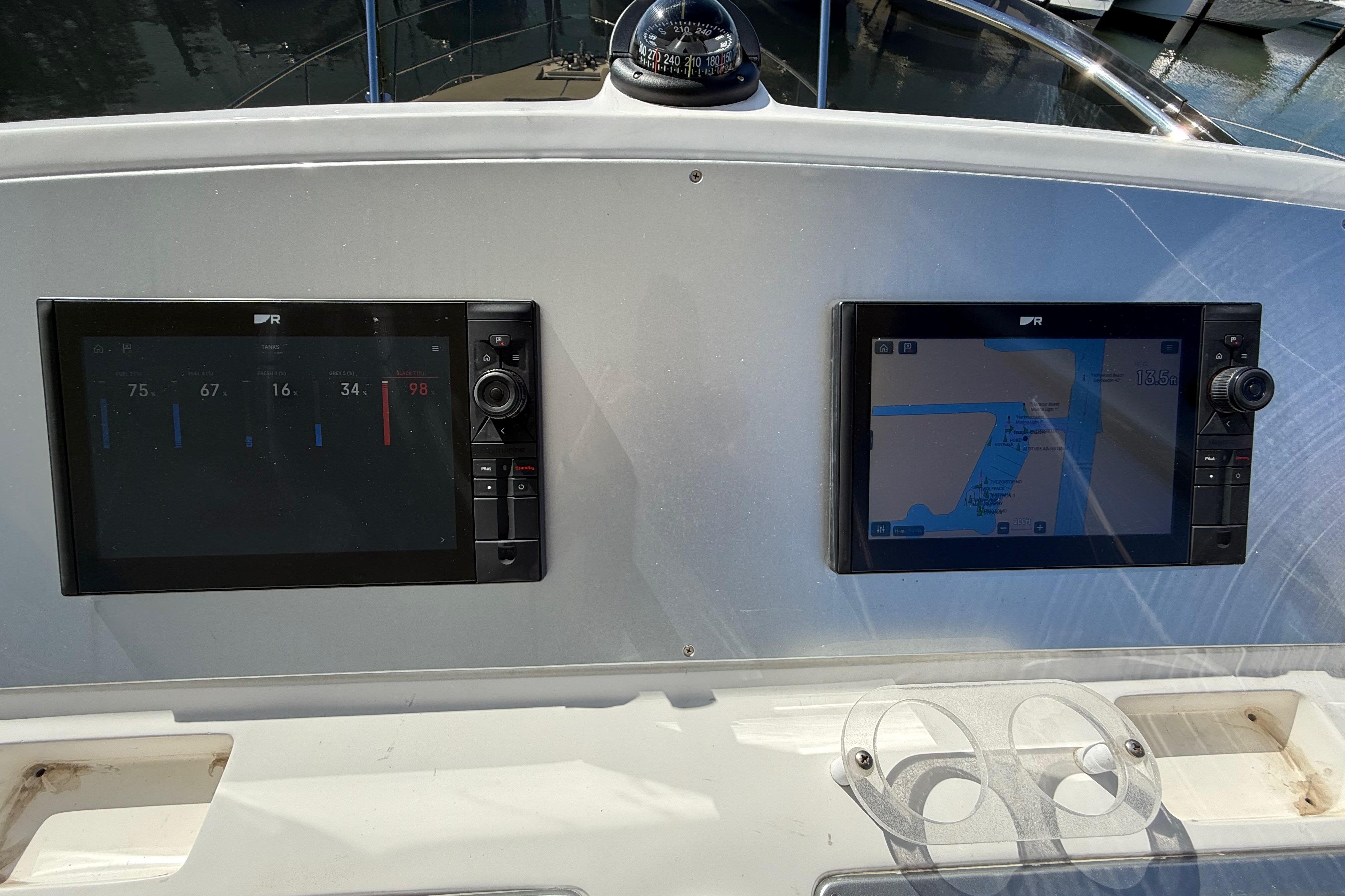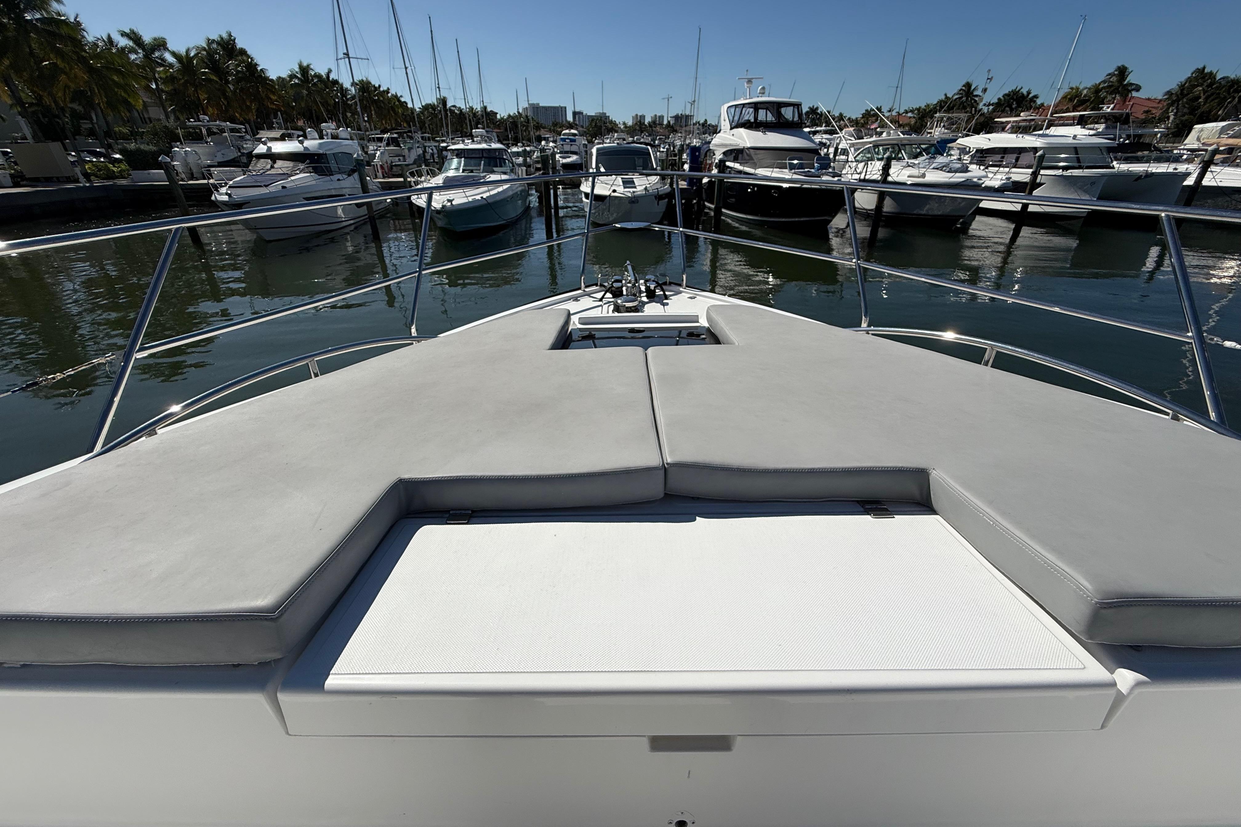 Standard Features Typically Include: Air conditioning, galley with cooktop, refrigerator and microwave, hydraulic swim platform, flybridge with seating, autopilot and multifunction displays at helm (specific equipment can vary by boat and dealer)