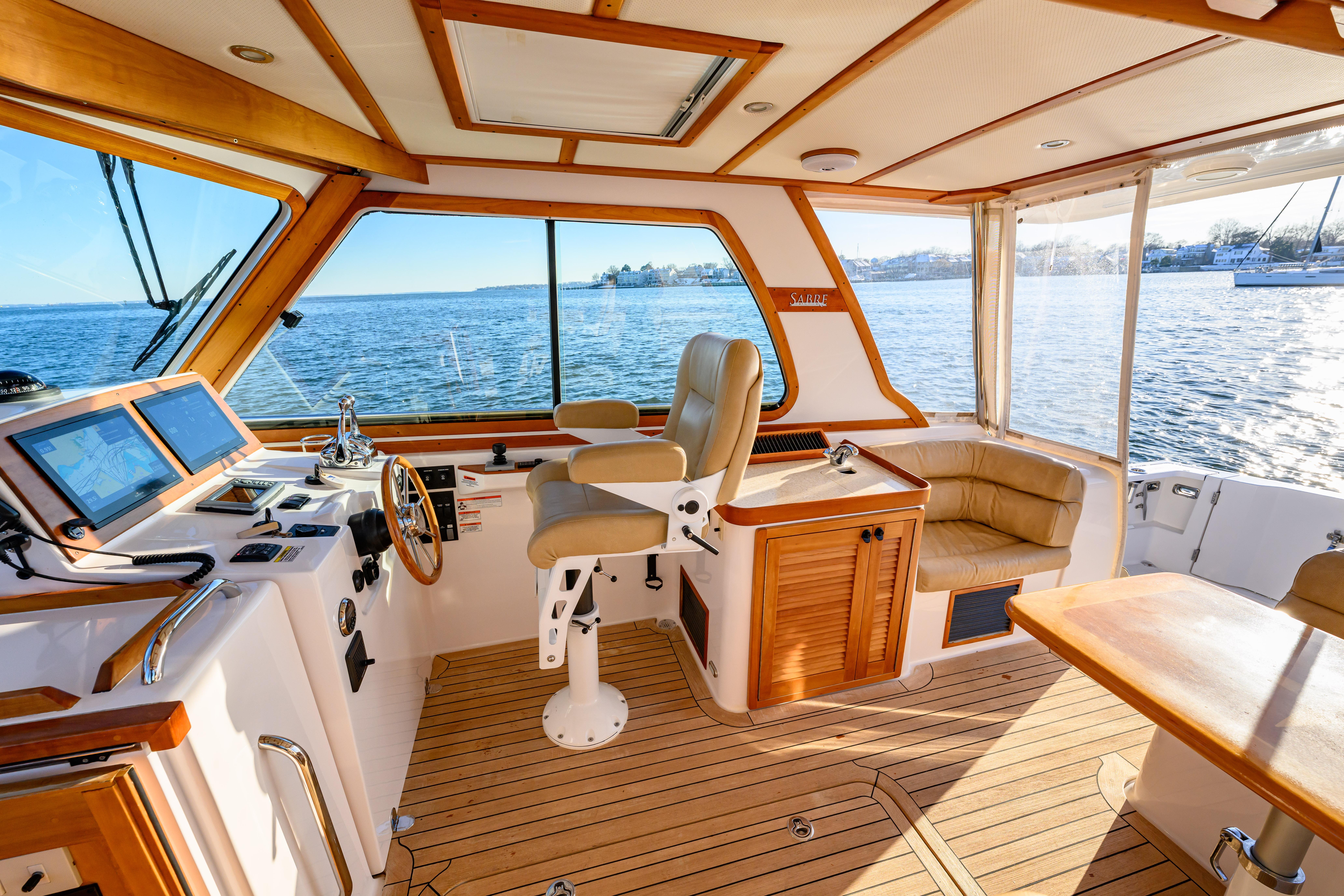 The Sabre 42 has often been considered the ideal express cruising boat. With striking Downeast lines the boat will turn heads in any marina or mooring field. The true magic on the Sabre 42 is how well the bridgedeck blends with the cockpit and interior - giving you a boat that doesn't feel like you are "inside" while on the water because of its 360 degrees of visibility. Connectivity to entertaining features and an open back that allows for an "on the water" feel when you want it, but will easily enclose and be conditioned when the weather dictates mean your boat will work for any occasion.