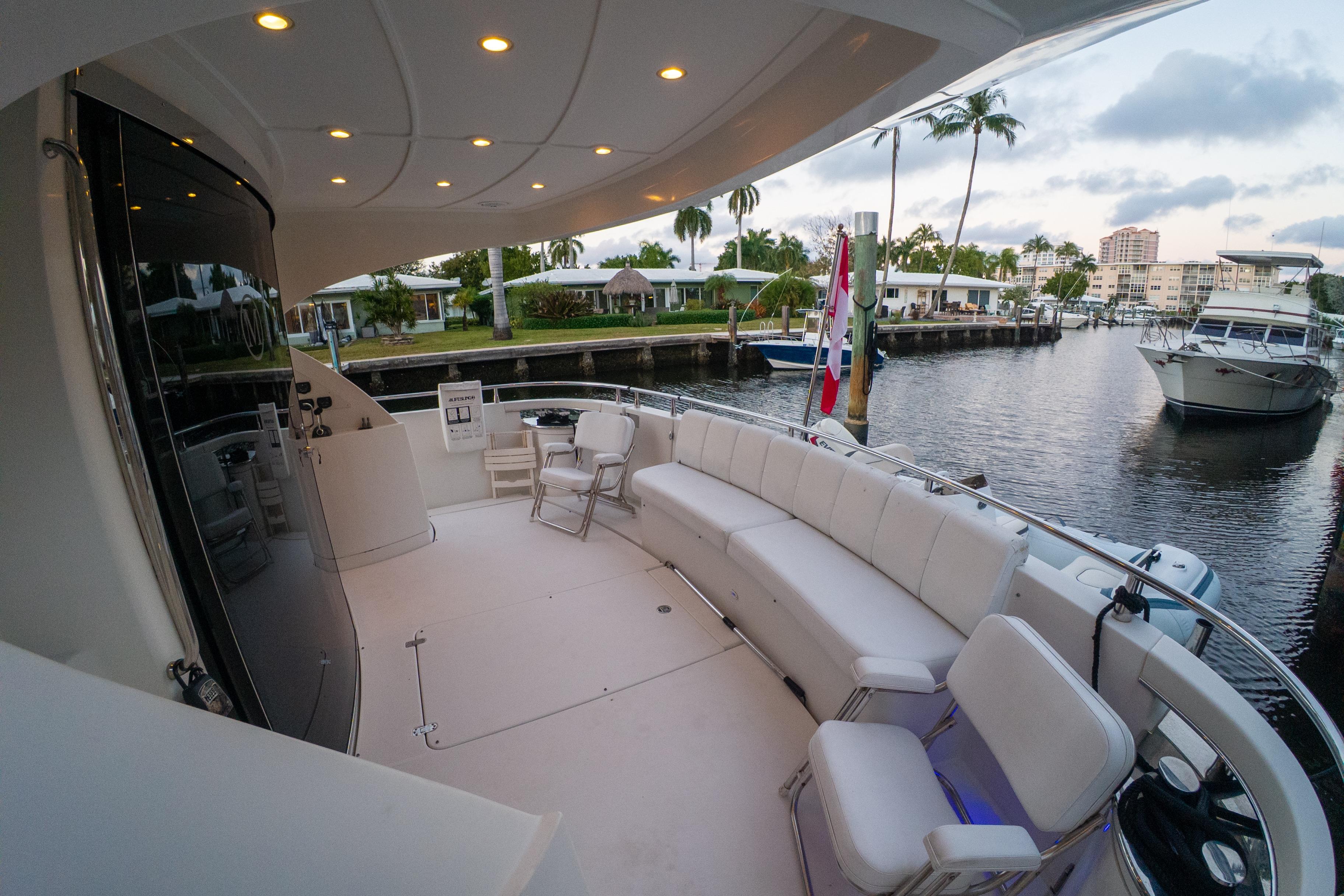 Standard Equipment: hydraulic swim platform; fore and aft shorepower ties; bow and stern thrusters; granite countertops and soles; Sub-Zero refrigerator and freezer; 32” Sony plasma TV; 110-volt stereo and Surround Sound system in saloon; 2/isolation transformers; 4/2,000-gph bilge pumps; bronze through-hulls; KitchenAid convection/microwave oven; 15.5-kW Kohler gensetOptional Equipment