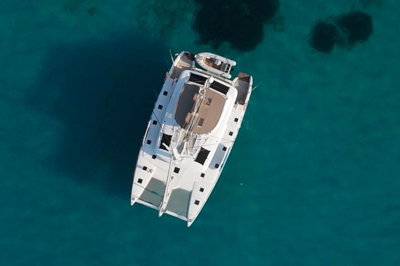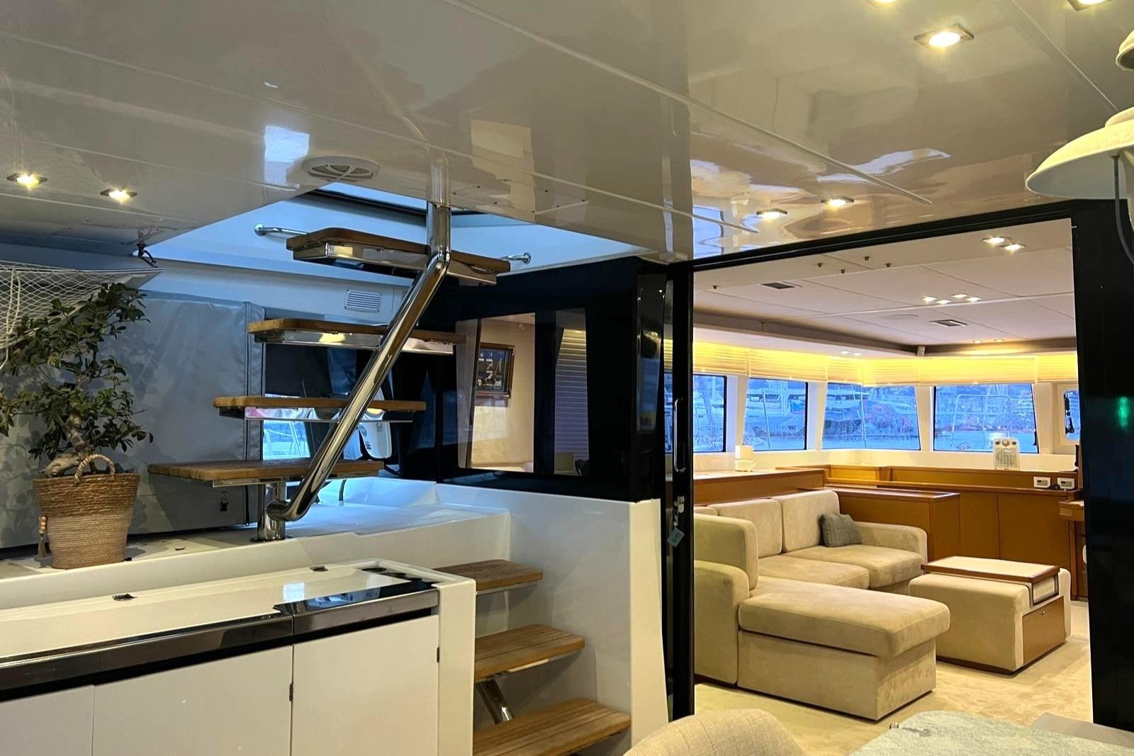 This version stands out for its extremely complete equipment and technical management geared towards long-range sailing. The vessel is fully equipped for ocean navigation, with professional B&G instrumentation, MF/HF communication systems, satellite phone, Navtex and redundant helm stations. Nothing is missing on board: Starlink for high-speed internet even offshore, video surveillance, advanced security systems and lifestyle equipment of a true super-cat
