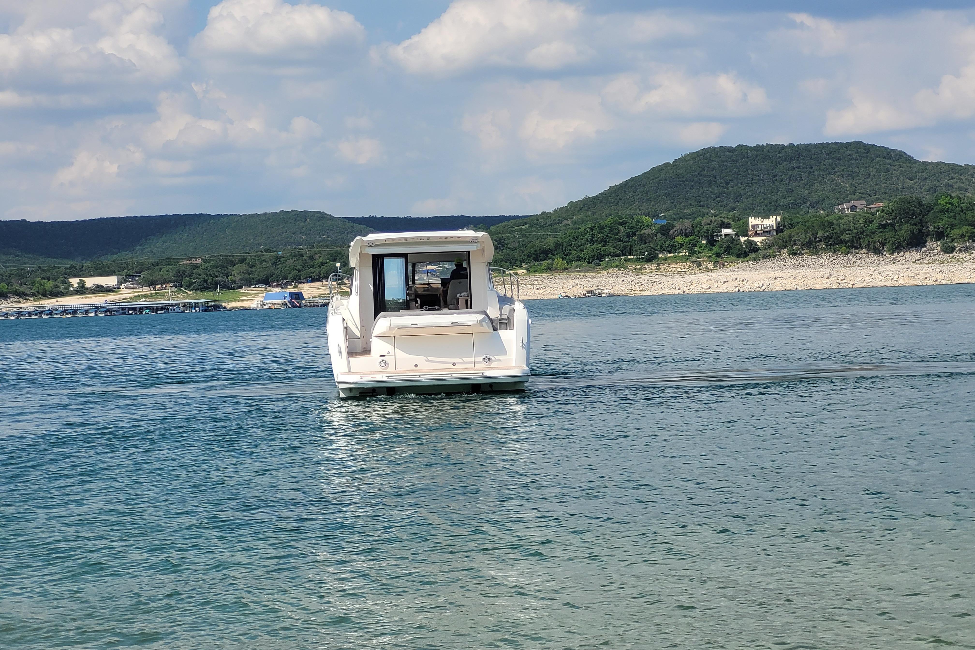 Twin inboard Cummins 6.7L 380hp with V-Drives with only 71 Lake Travis hours and Cummins Onan 7.5Kw genset with 135 hours. Cummins joystick docking integrated with independent bow thruster controls. 2 staterooms with 2 head compartment luxury motor yacht fully loaded with every factory option including upgraded JL Audio package integrated with RGB lighting & Fusion marine receivers with transom controller. Beautiful virgin teak cockpit flooring with adjustable tabletop and hydraulic swim platform.