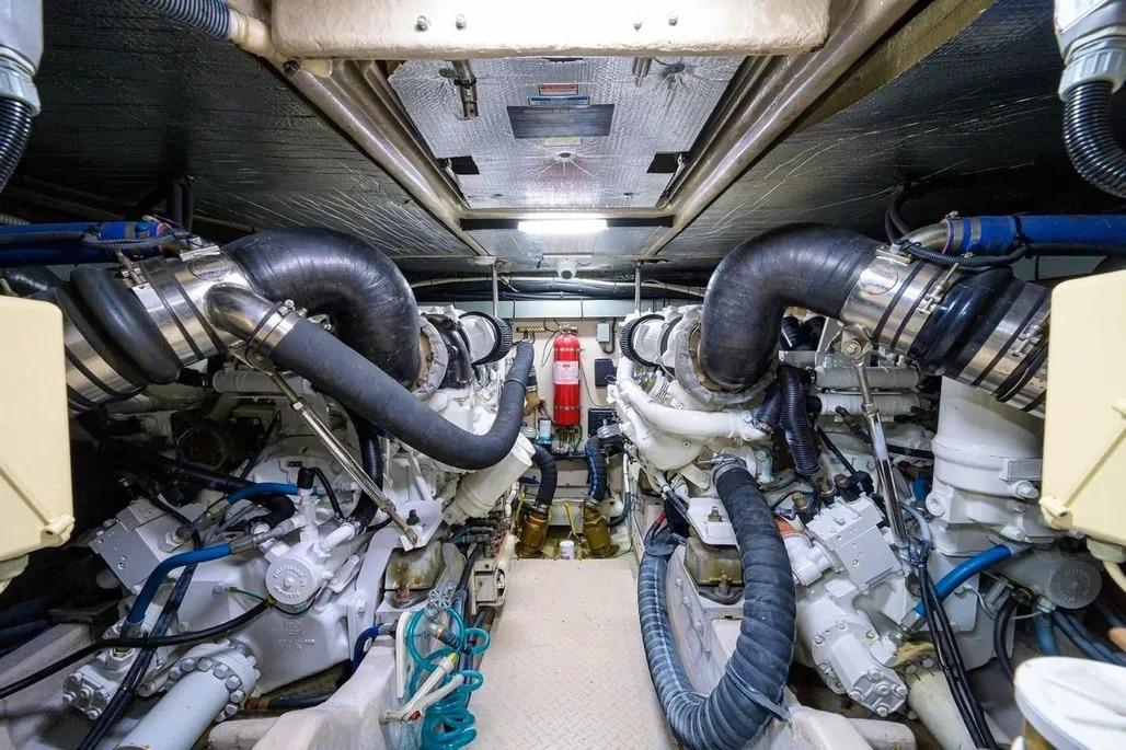 Powered by twin MAN 2848LE4 V8 producing 765 horse power each. With 2400 hours Port 2480 Hours Starboard as of 1/20/2026.