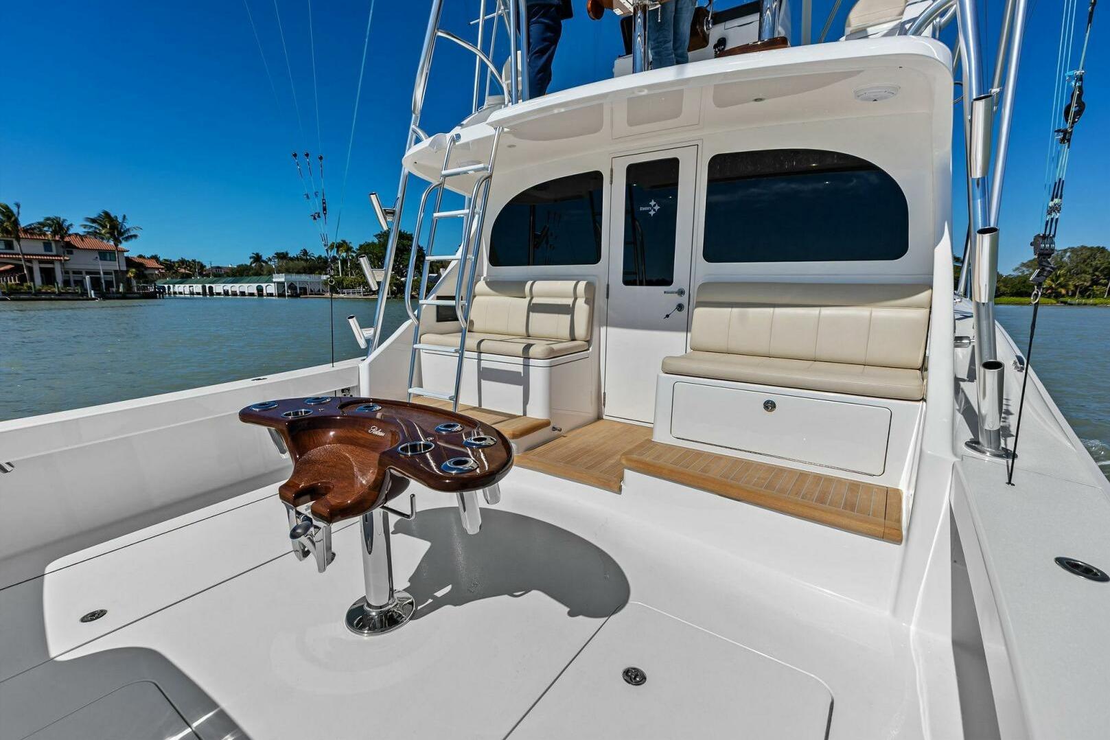 - Dual in-deck fish boxes, transom livewell, and tuna door