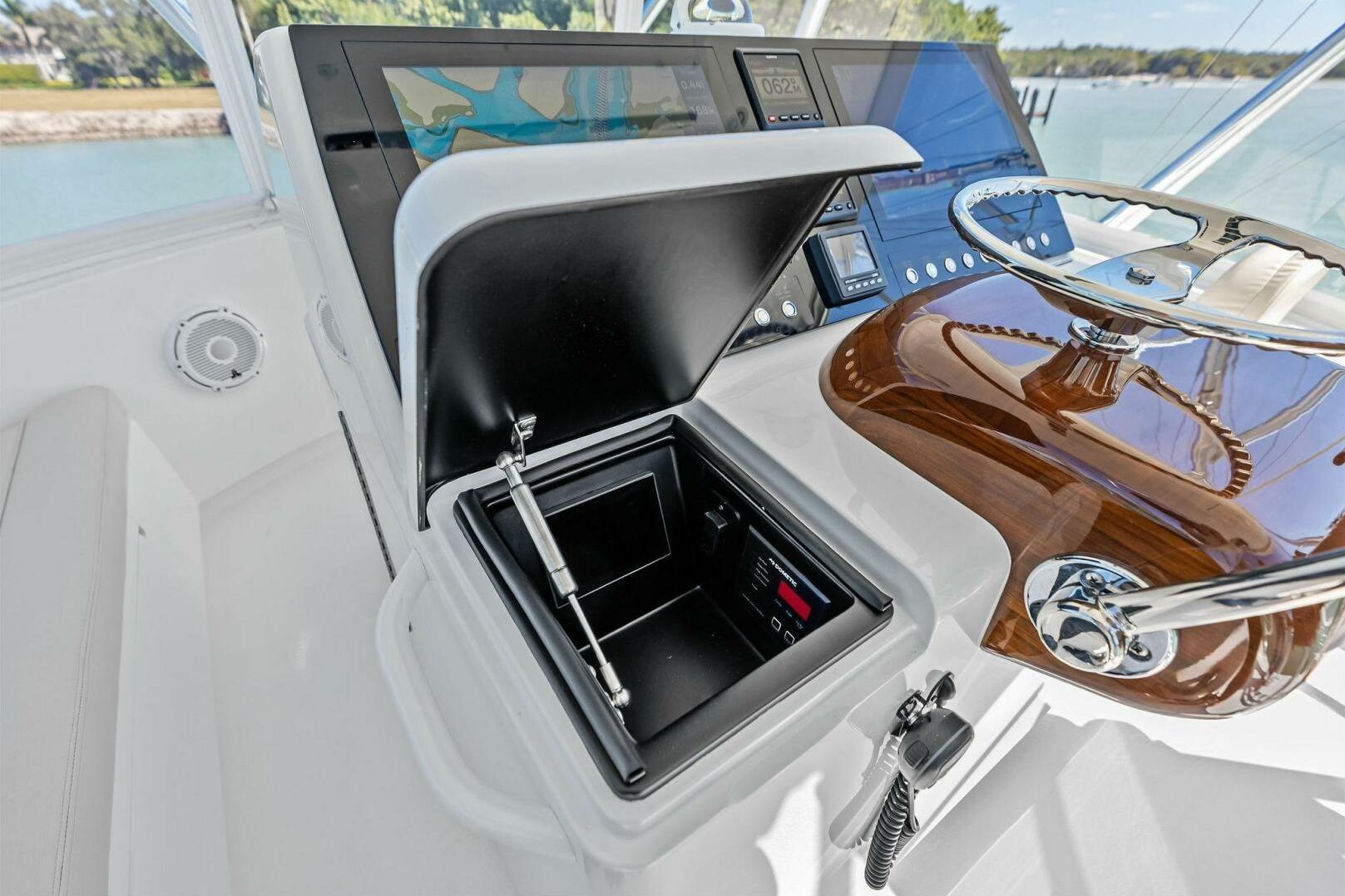 - Teak helm pod with single-lever controls